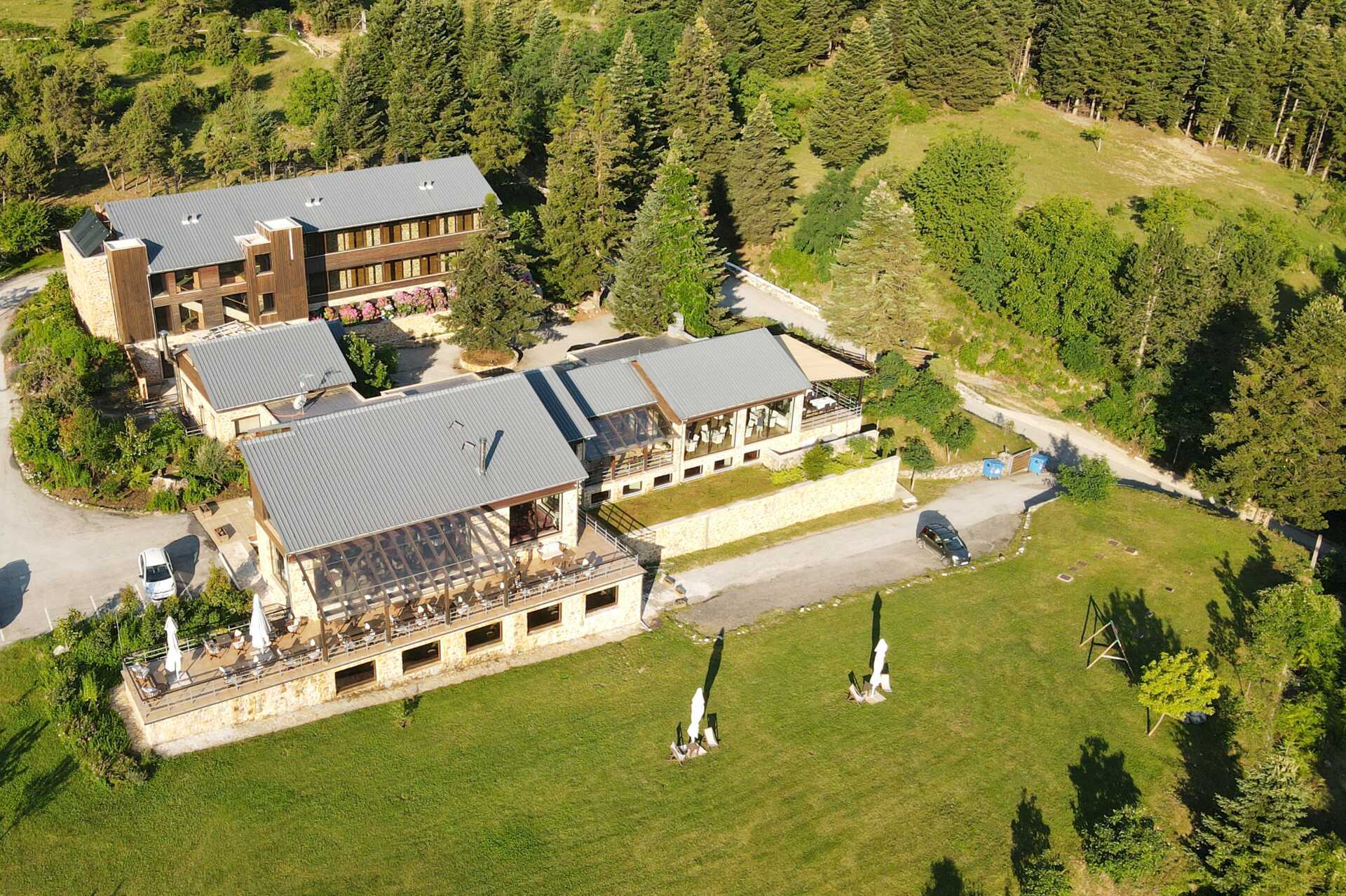 Orizontes Tzoumerkon Hotel Resort ligger på en höjd av 1000 meter i gröna skogbeklädda berg med cederträ och granar där det majestätiska landskapet är magiskt vackert. Hotellets läge, vid foten av bergstoppen Stroggoula och i hotellets spa kan du njuta av både utsikten och bergen. Över hotellet vilar en diskret känsla av lyx och kvalité med sina tolv rum.