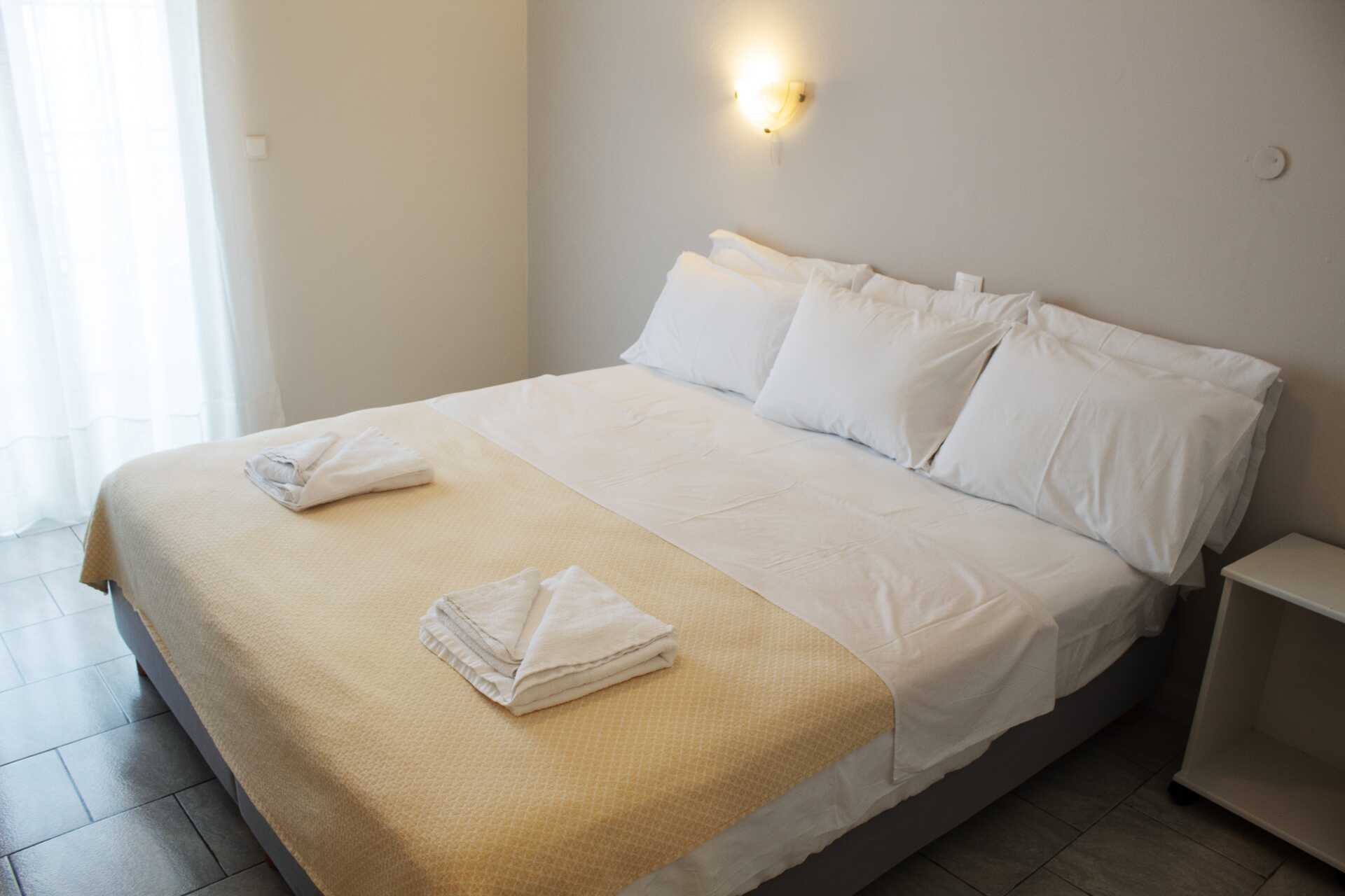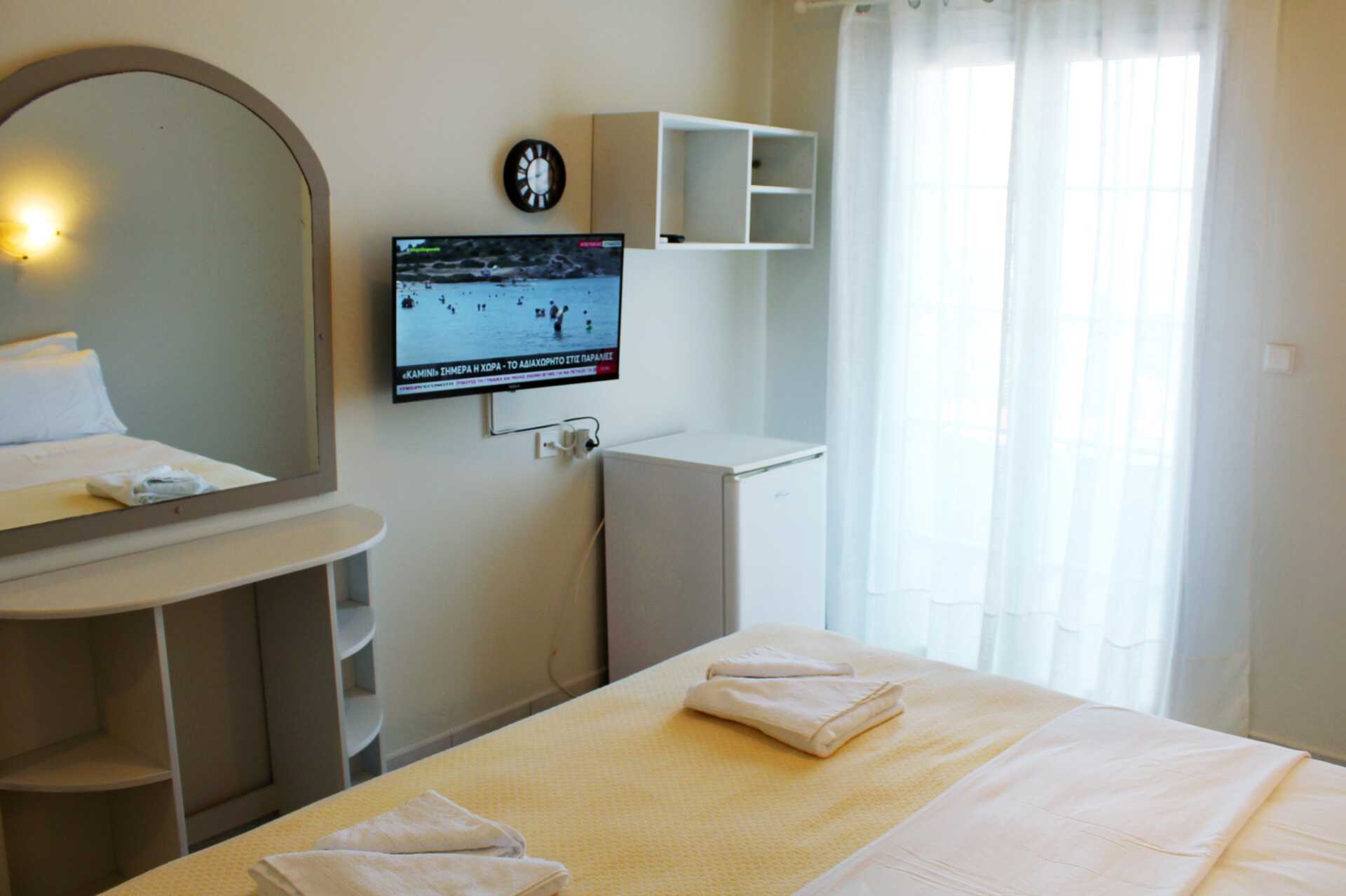 Dubbelrum med balkong, vissa med havsutsikt. En dubbelsäng eller två enkelsängar. Wifi, luftkonditionering och deponering ingår. Kylskåp. Tv med lokala kanaler. Badrum med dusch och wc. Städning 3 ggr/vecka. Barn under två år räknas in i max antal personer i rummet.
