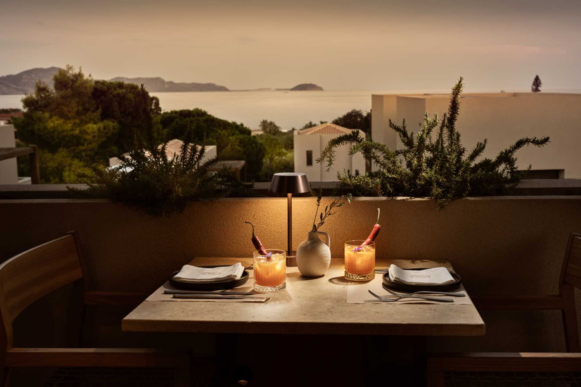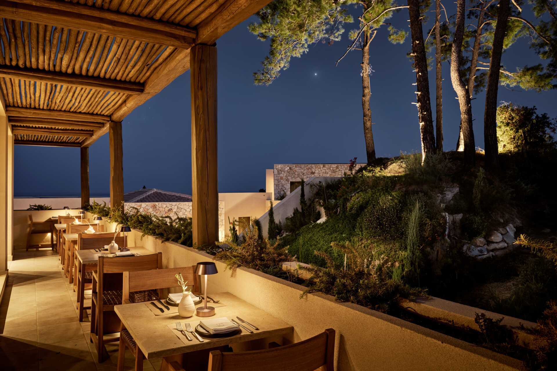 I bufférestaurangen dukas det upp frukost varje morgon, med härliga inslag från det grekiska köket. Under dagen håller sedan hotellets Kafeteria öppet från tidig morgon till sen eftermiddag. Här serveras varma och kalla drycker, brunch samt ett brett utbud av snacks och tilltugg. Framåt kvällen kan du slå dig ner i à la carte restaurangen Verde Ruga som bjuder på vacker utsikt över det Joniska havet. Här serveras vällagade rätter med lokala råvaror och många ingredienser från hotellets egen trädgård - med spännande smaker från Medelhavet.