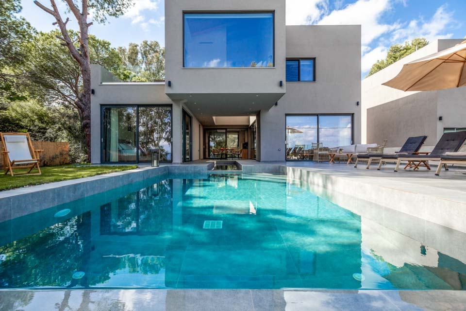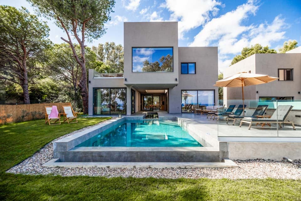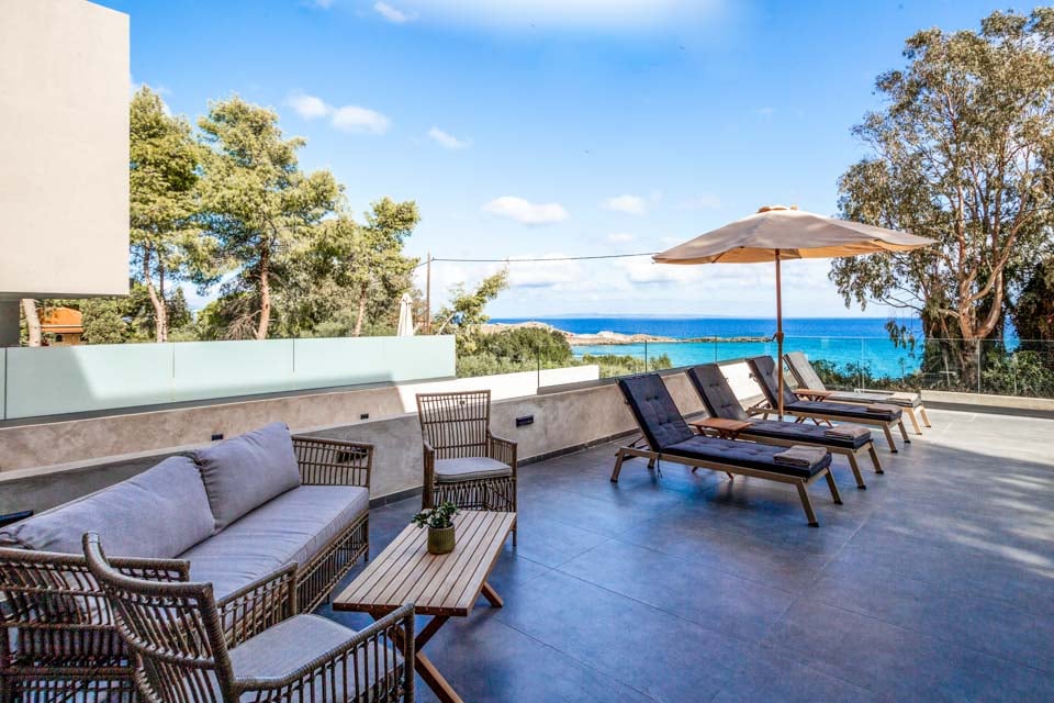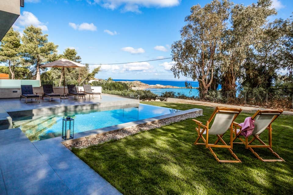 Utomhus kan du njuta av det grekiska solskenet på en av solstolarna, och när det blir varmt svalkar den glittrande infinitypoolen dig. Bredvid ligger en systervilla, perfekt för stora grupper av familjer eller vänner att tillbringa er semester med.