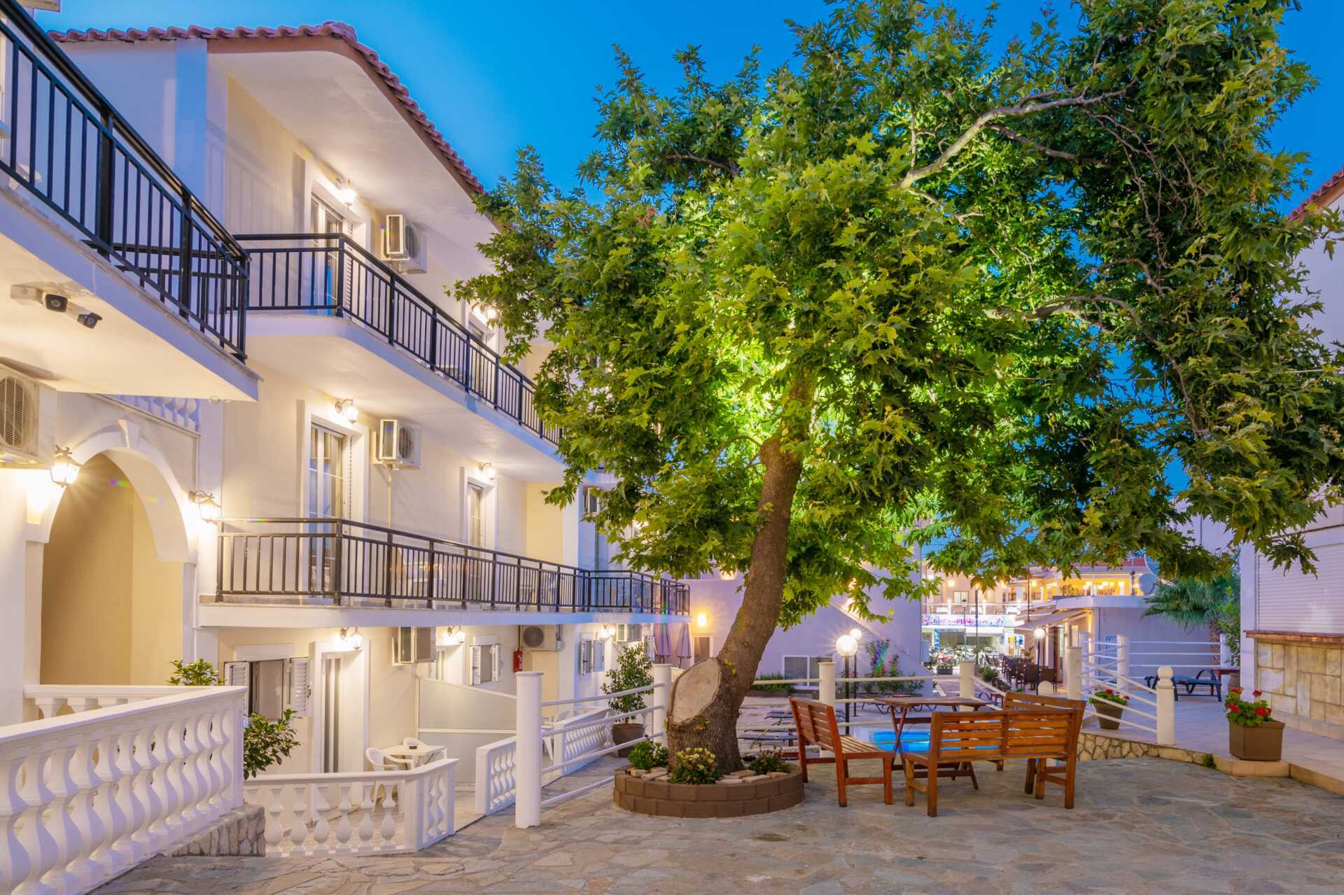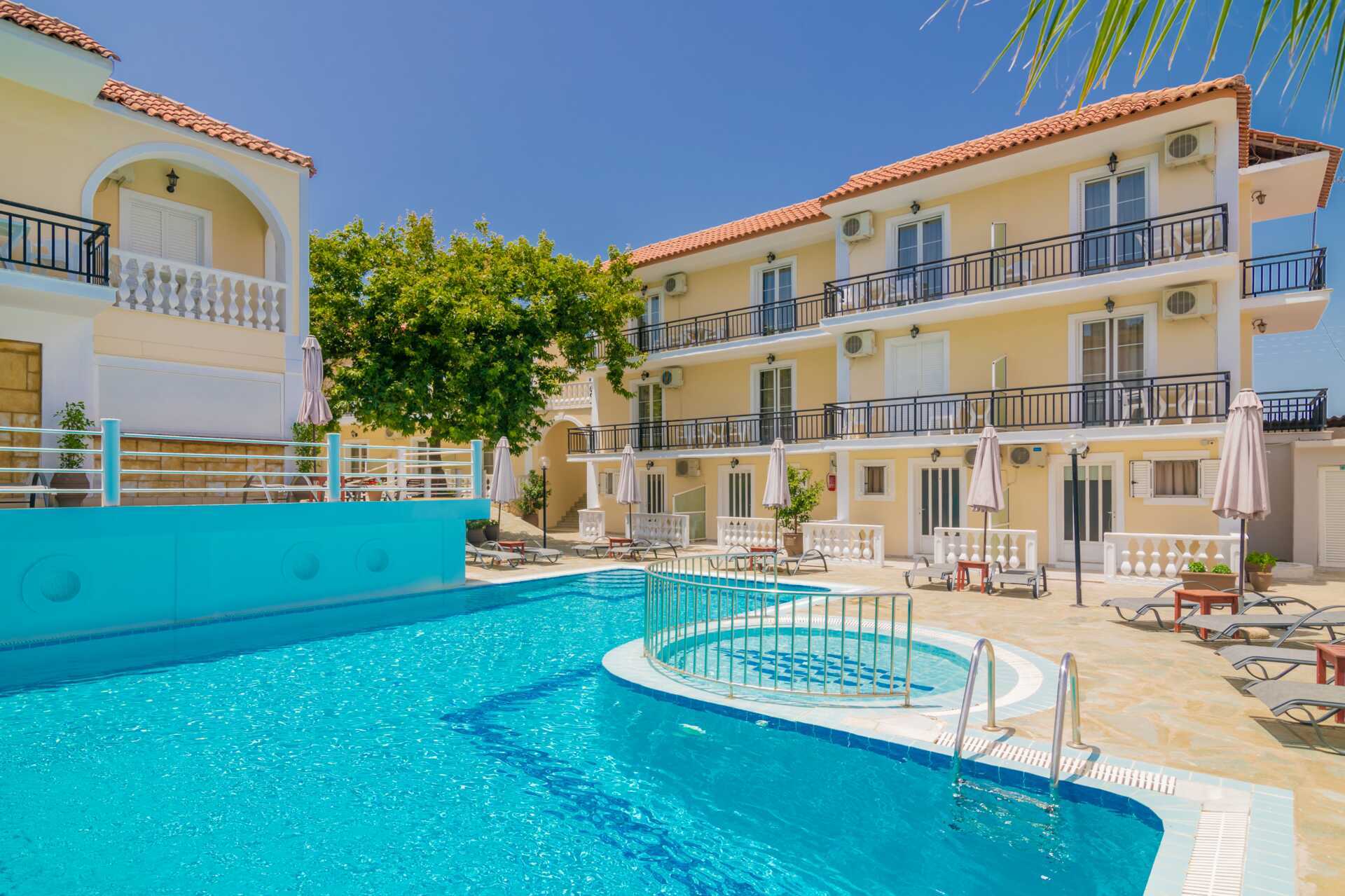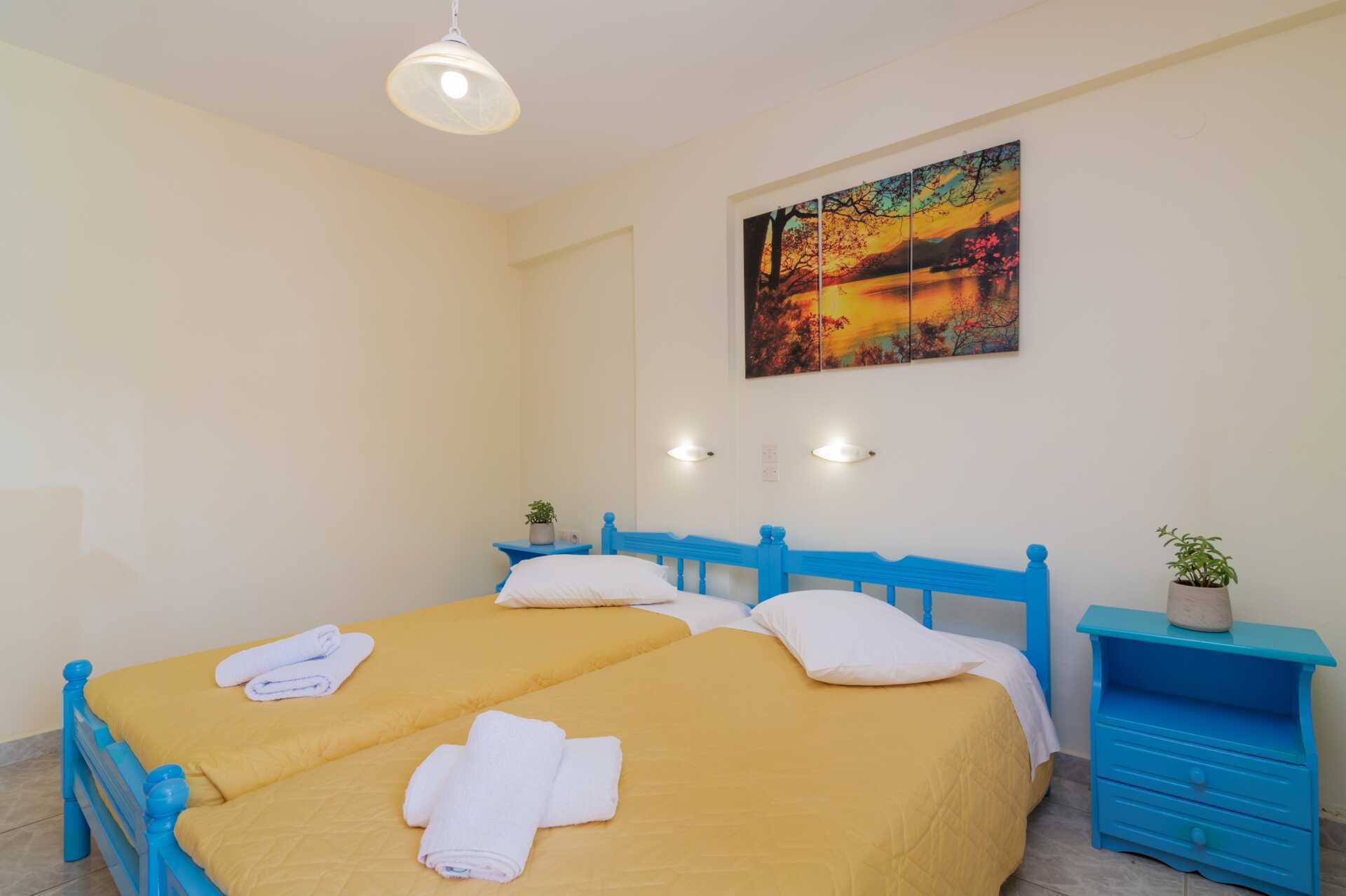 Dubbelrum med balkong eller markbalkong, vissa med poolutsikt. Två enkelsängar. Möjlighet till extrabädd i enkelsäng. Wifi och deponering ingår. Luftkonditionering mot avgift. Kylskåp. Badrum med dusch och wc. Städning 7 ggr/vecka.