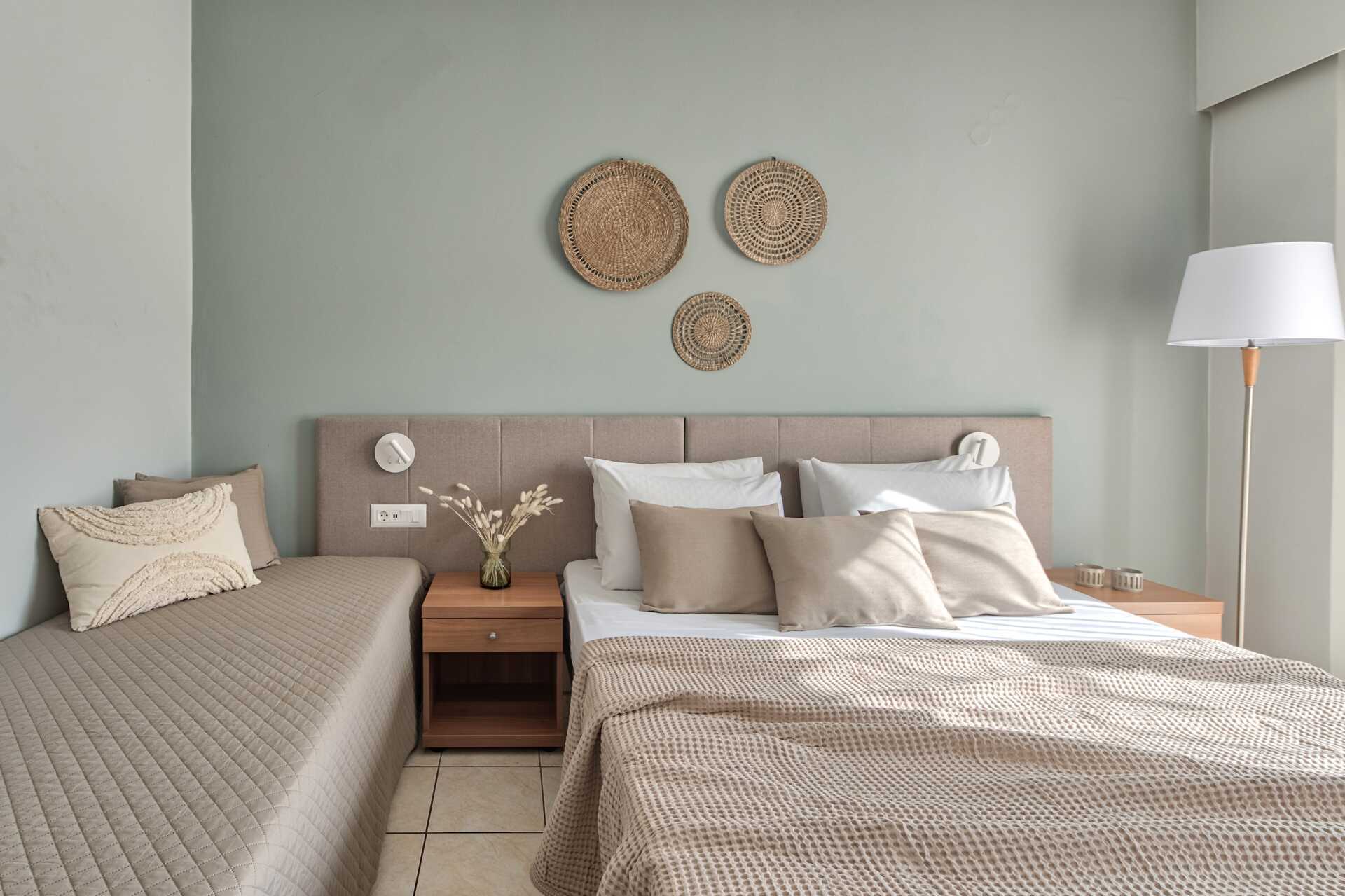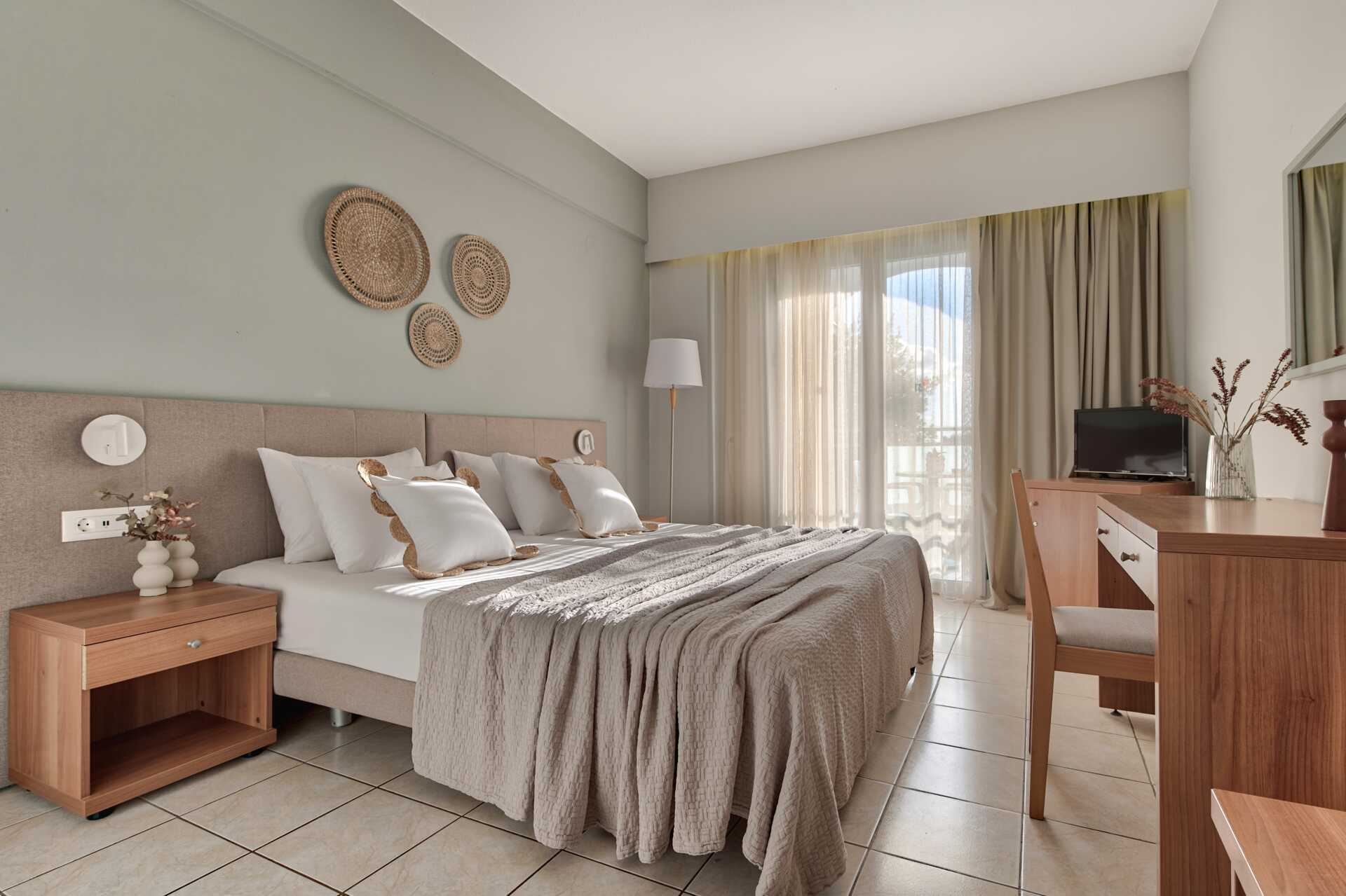 Dubbelrum balkong. En dubbelsäng eller två separata sängar. Möjlighet till en extrabädd. Wifi ingår. Luftkonditionering och deponering mot avgift. Kylskåp mot avgift. Tv med internationella kanaler. Hårtork. Badrum med dusch och wc. Balkong. Städning 7 ggr/vecka.