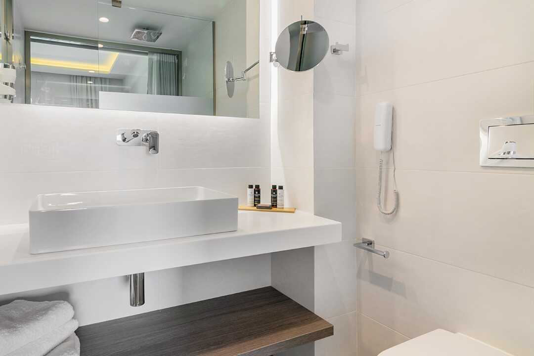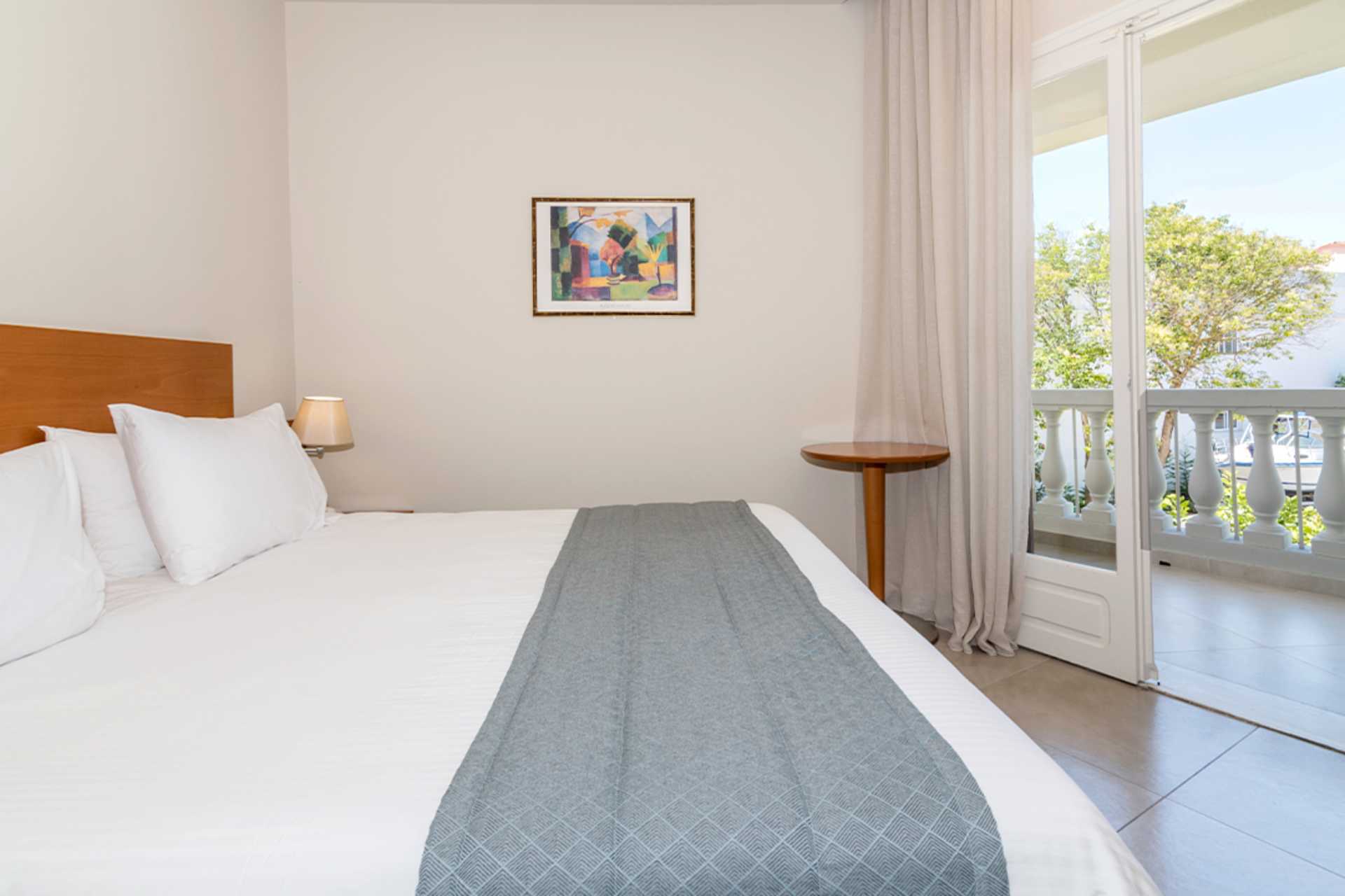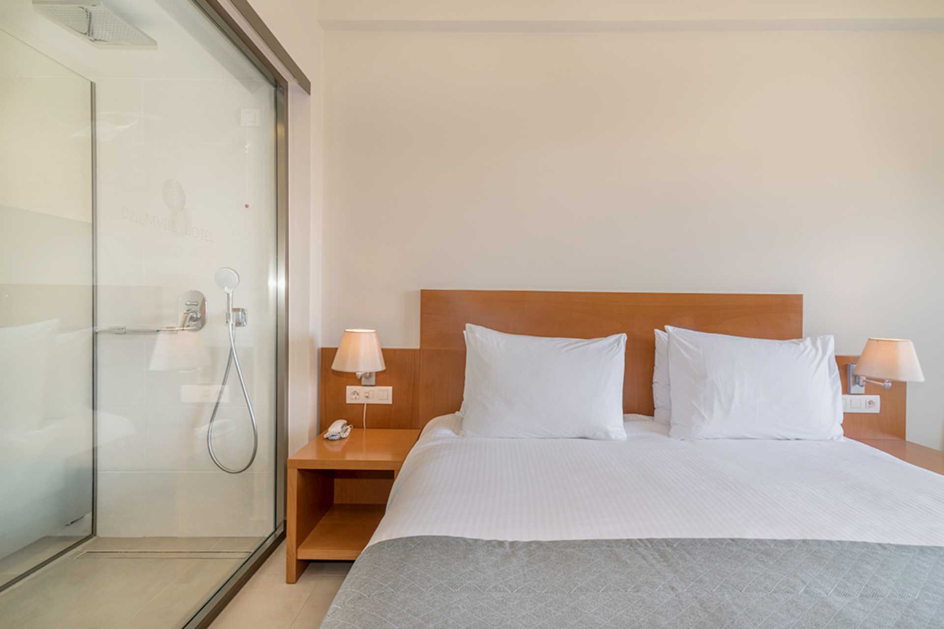 Dubbelrum med balkong, vissa med poolutsikt. En dubbelsäng. Wifi ingår. Luftkonditionering och deponering mot avgift. Kylskåp. Vattenkokare. Tv med internationella kanaler. Hårtork. Badrum med dusch och wc. Städning 7 ggr/vecka. Barn under två år räknas in i max antal personer i rummet.