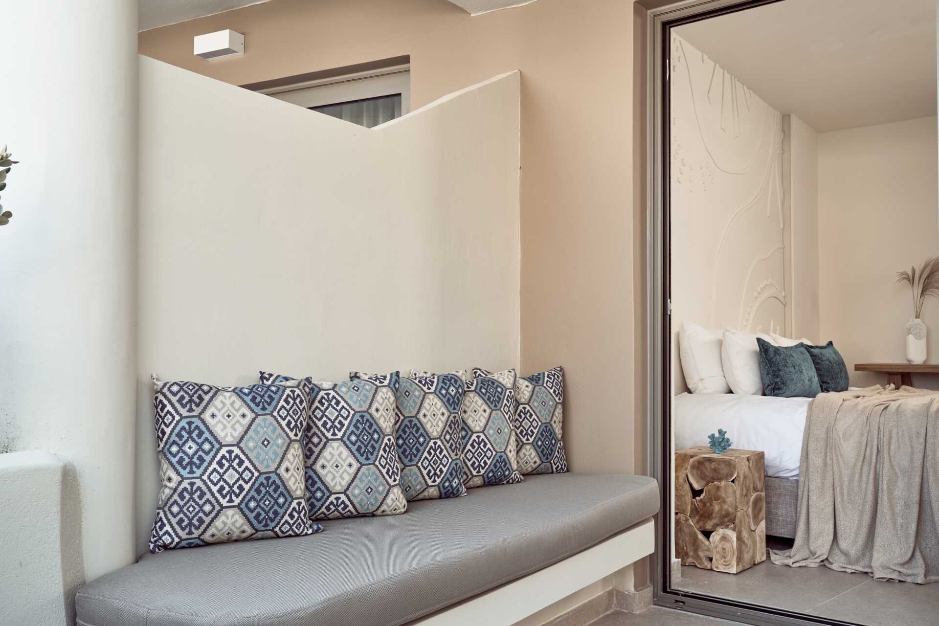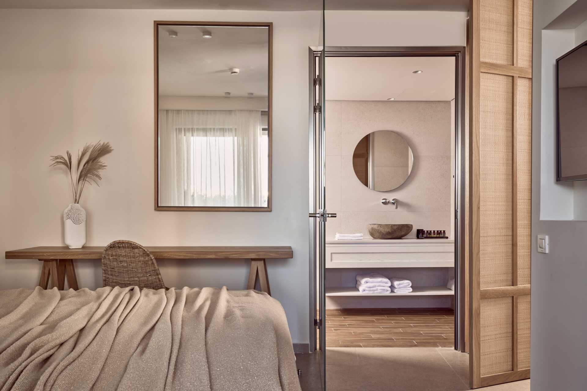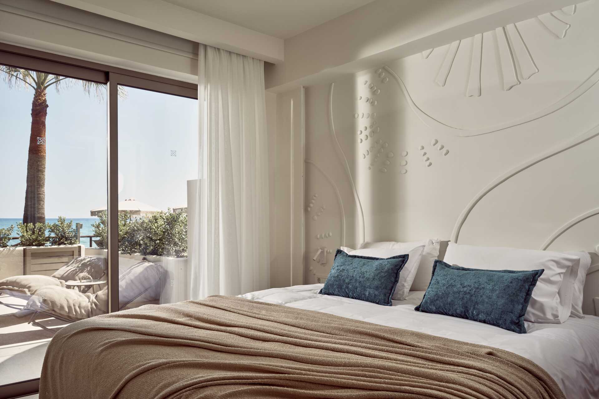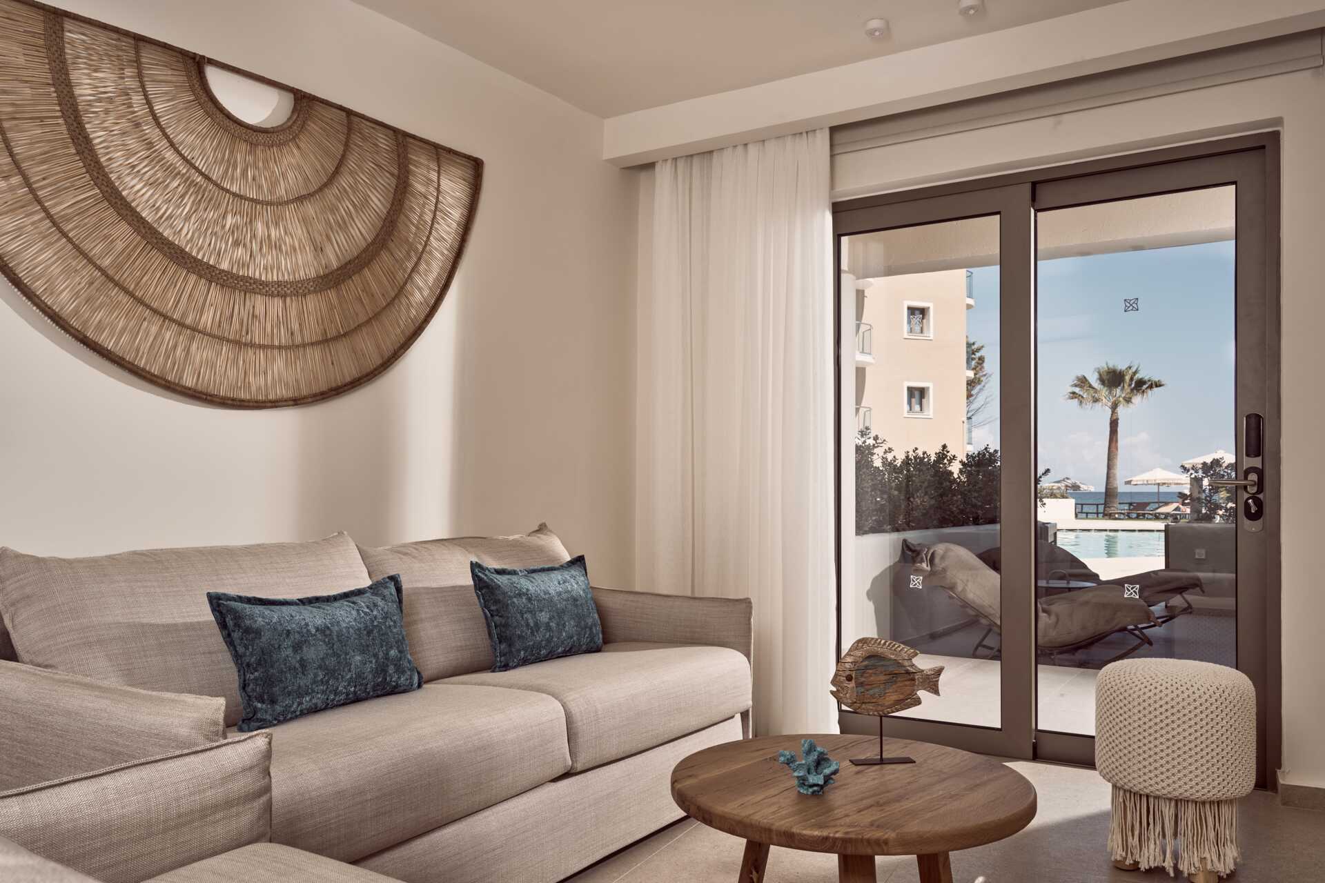 Juniorsvit med balkong och havsutsikt. Vissa rum har en hög tröskel till/från balkongen. En sovrumsdel och en vardagsrumsdel. En dubbelsäng. Möjlighet till extrabäddar i bäddsoffa och i bäddbar fåtölj. Wifi, luftkonditionering och deponering ingår. Kylskåp. Vattenkokare samt kaffe och te. Nespresso kaffemaskin. Tv med internationella kanaler. Tofflor. Hårtork. Badrum med dusch och wc. Städning 7 ggr/vecka.