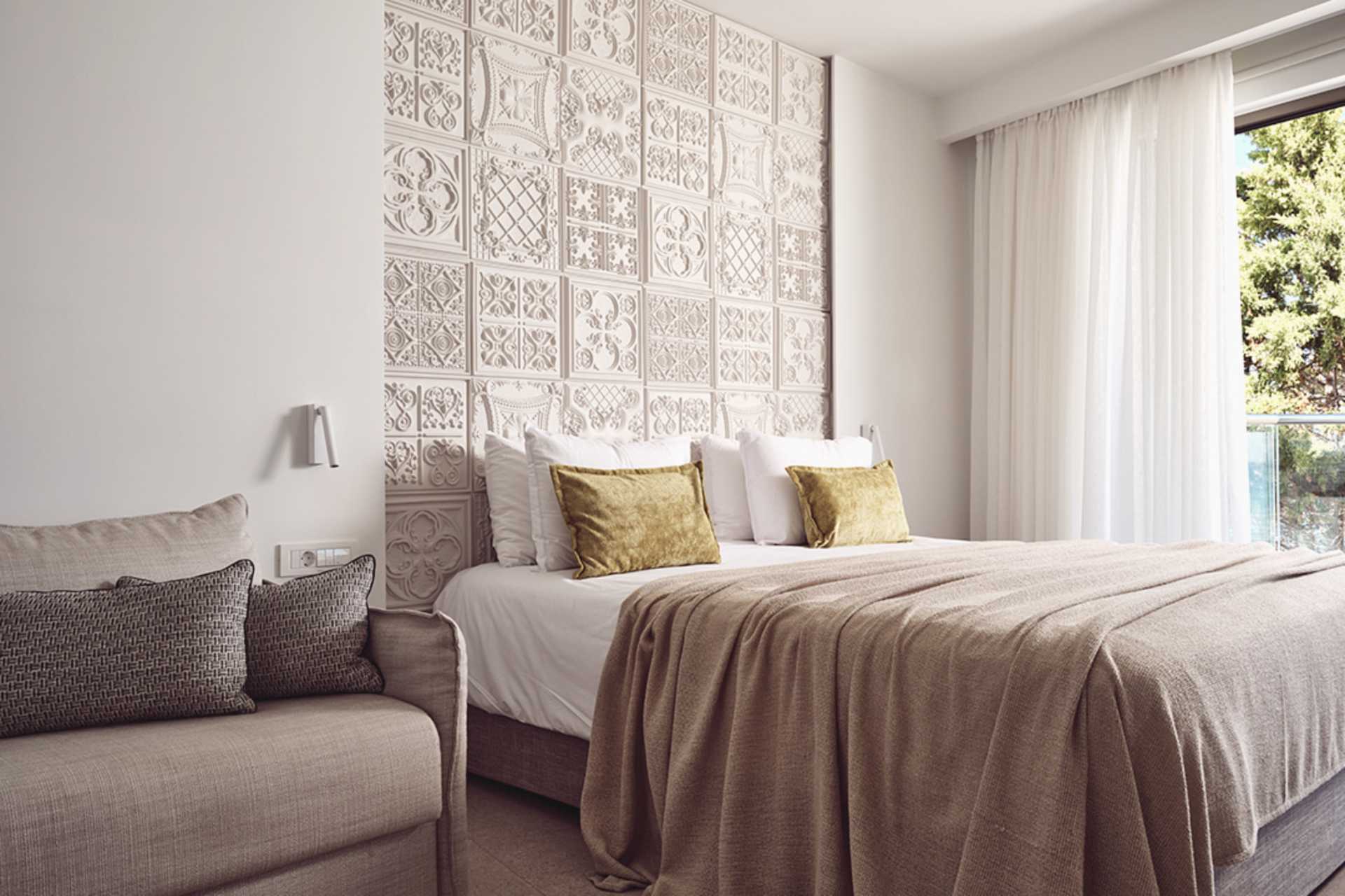 Superiorrum med balkong och havsutsikt. Vissa rum har en hög tröskel till/från balkongen. En dubbelsäng.Wifi, luftkonditionering och deponering ingår. Kylskåp. Vattenkokare samt kaffe och te. Kaffemaskin Nespresso. Tv med internationella kanaler. Tofflor. Hårtork. Badrum med dusch och wc. Städning 7 ggr/vecka.