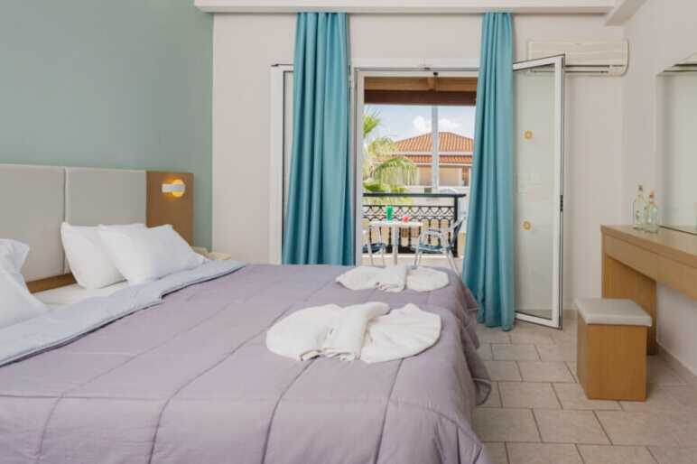 Dubbelrum med balkong eller markbalkong. En dubbelsäng eller två enkelsängar. Möjlighet till extrabädd i bäddsoffa. När extrabädden används kan det bli trångt i rummet. Wifi ingår. Luftkonditionering och deponering mot avgift. Kylskåp. Tv med lokala kanaler. Hårtork. Badrum med badkar eller dusch samt wc. Städning 7 ggr/vecka.