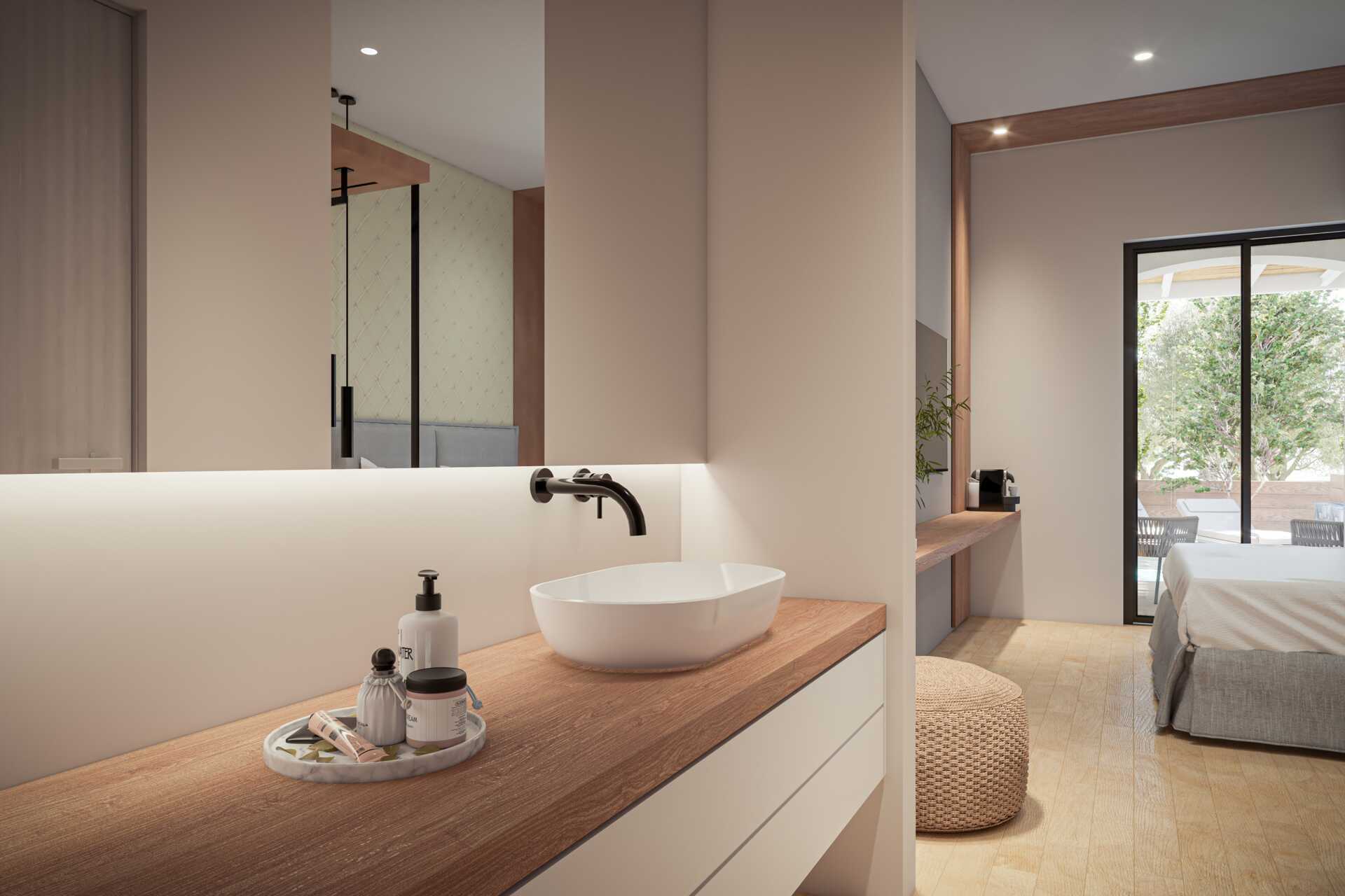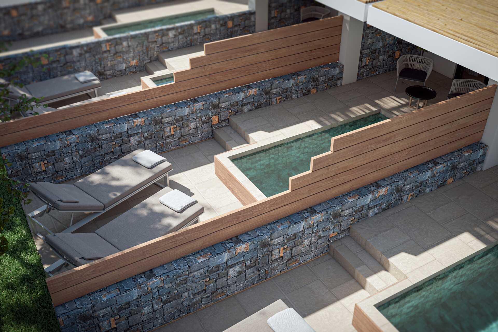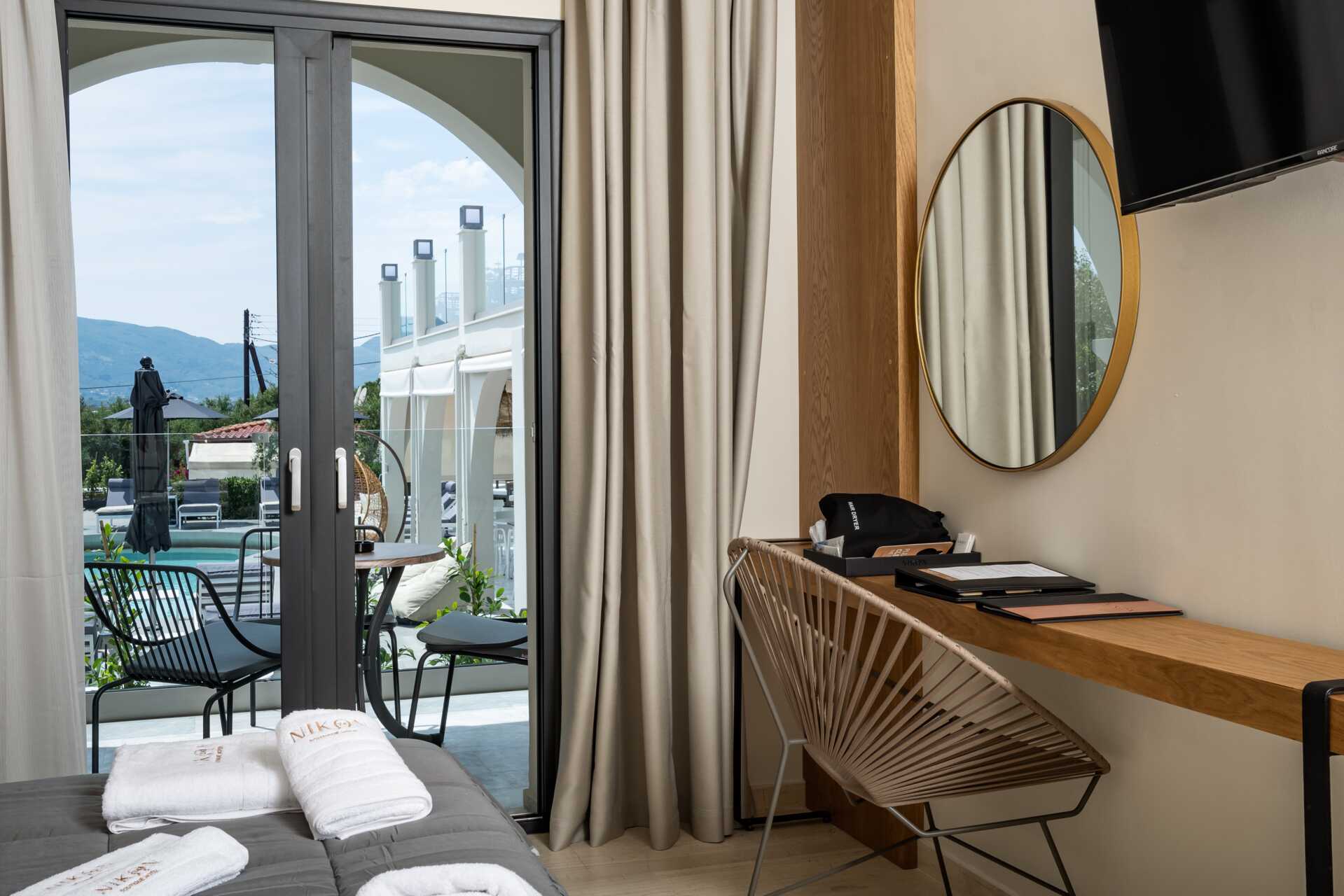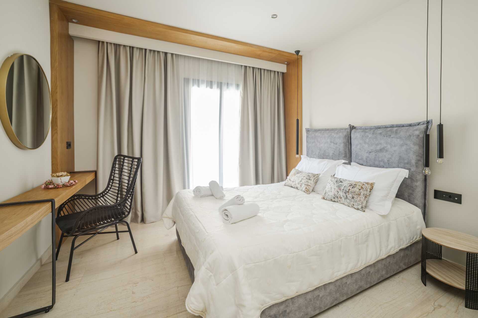 Superiorrum med privat pool. Två solstolar och ett parasoll vid poolen. En dubbelsäng. Wifi, luftkonditionering och deponering ingår. Kylskåp. Vattenkokare samt kaffe och te. Tv med internationella kanaler. Badrockar och tofflor. Hårtork. Badrum med dusch och wc. Städning 7 ggr/vecka.
