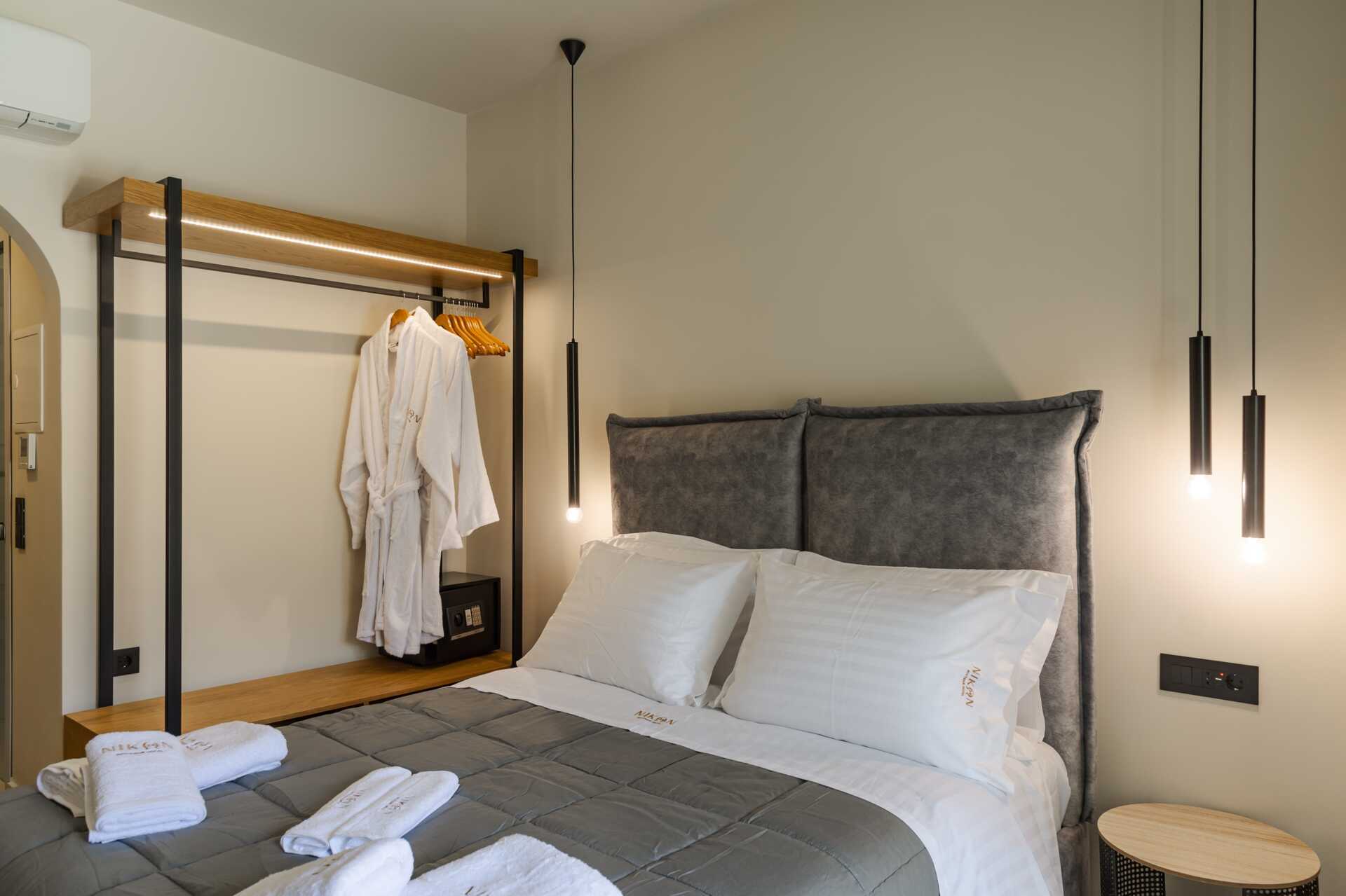 Superiorrum med balkong, vissa med poolutsikt. En dubbelsäng. Wifi, luftkonditionering och deponering ingår. Kylskåp. Vattenkokare samt kaffe och te. Tv med internationella kanaler. Badrockar och tofflor. Hårtork. Badrum med dusch och wc. Städning 7 ggr/vecka.
