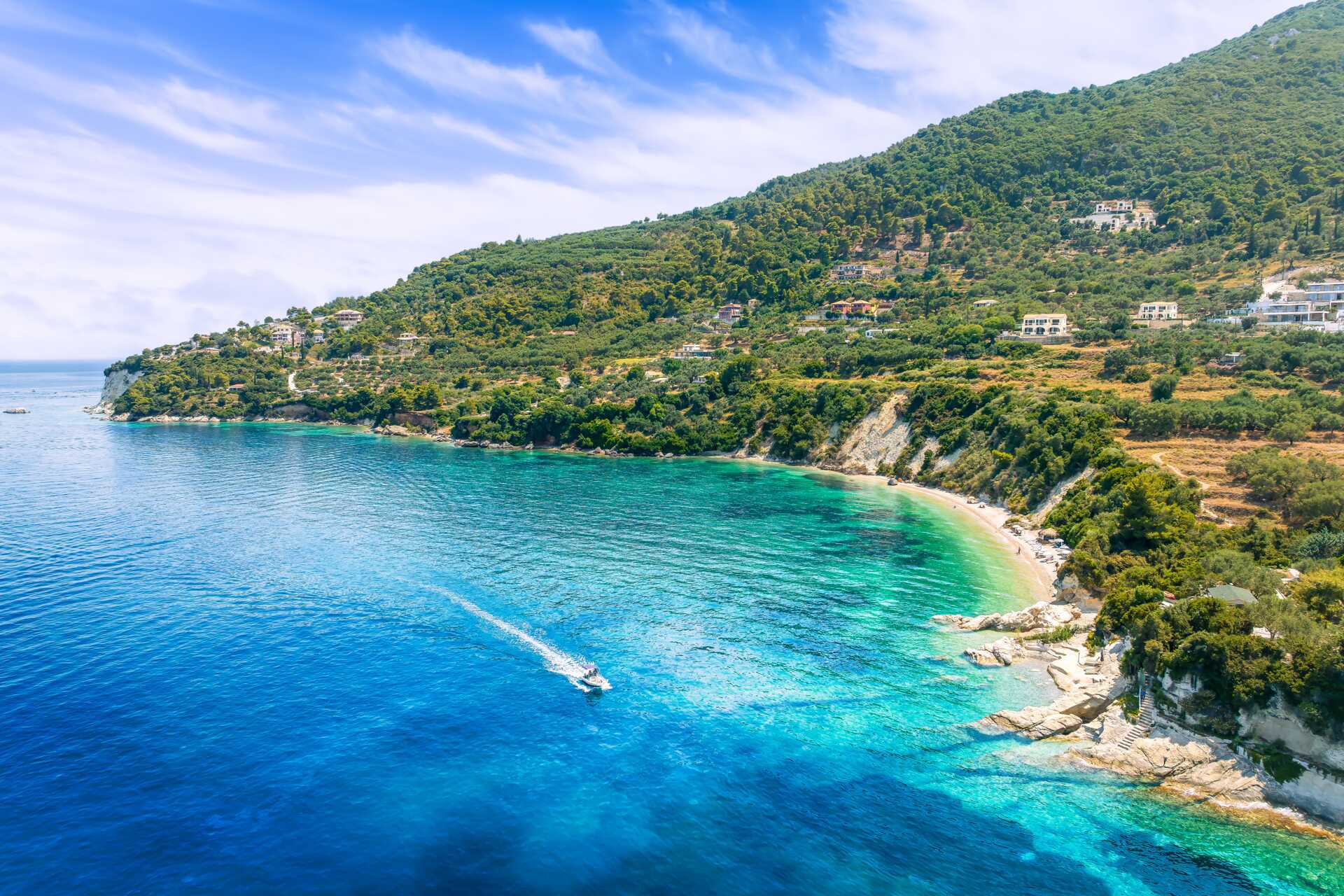 Nere vid kusten ligger Marathias, en plats som snabbt får axlarna att sjunka. Här väntar klart vatten, klippor som ramar in stranden och naturen precis intill. Det passar perfekt för dig som vill ha stranddagar utan stök, där fokus ligger på salta dopp, sol och långa, lata dagar vid havet.