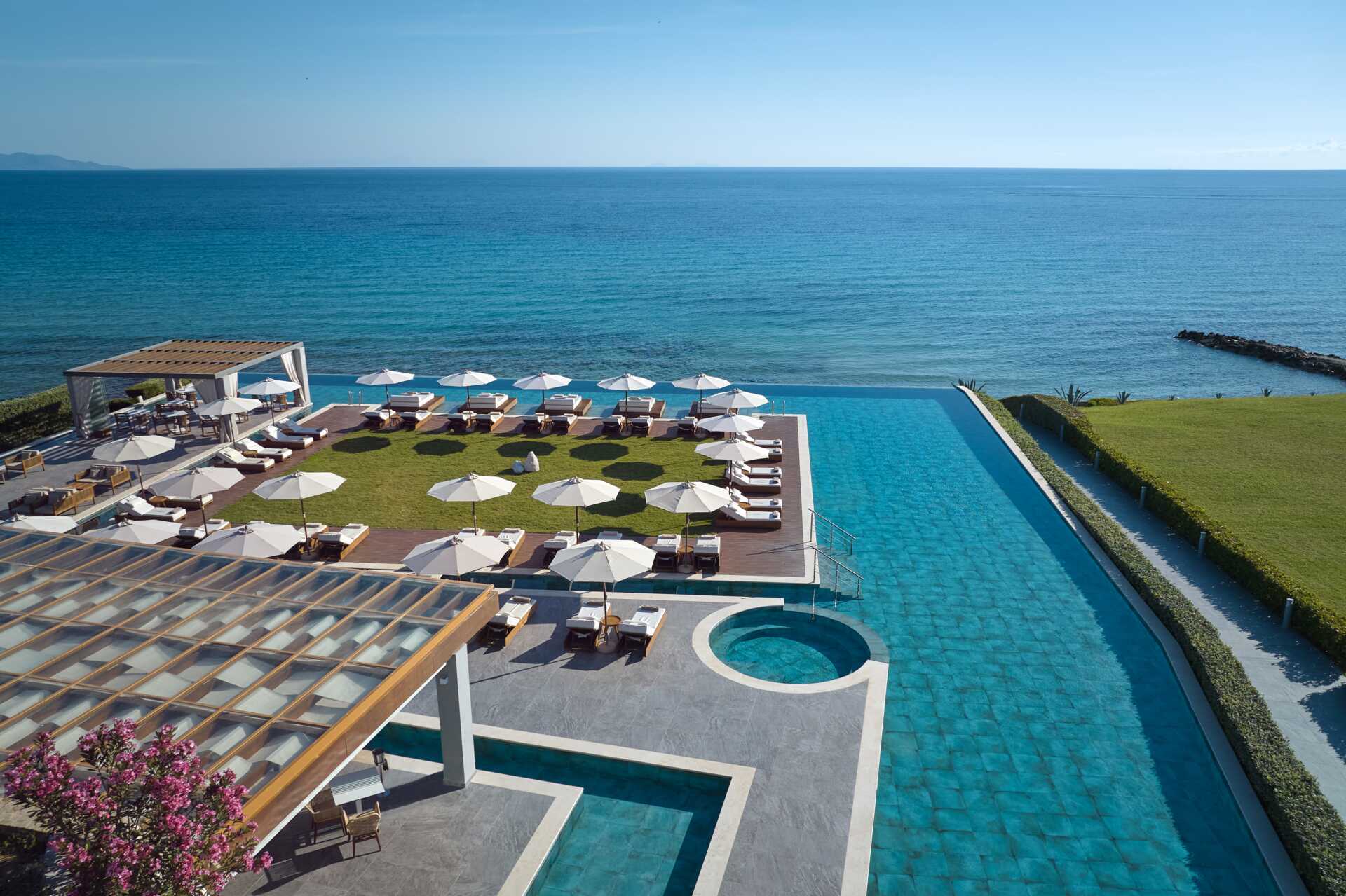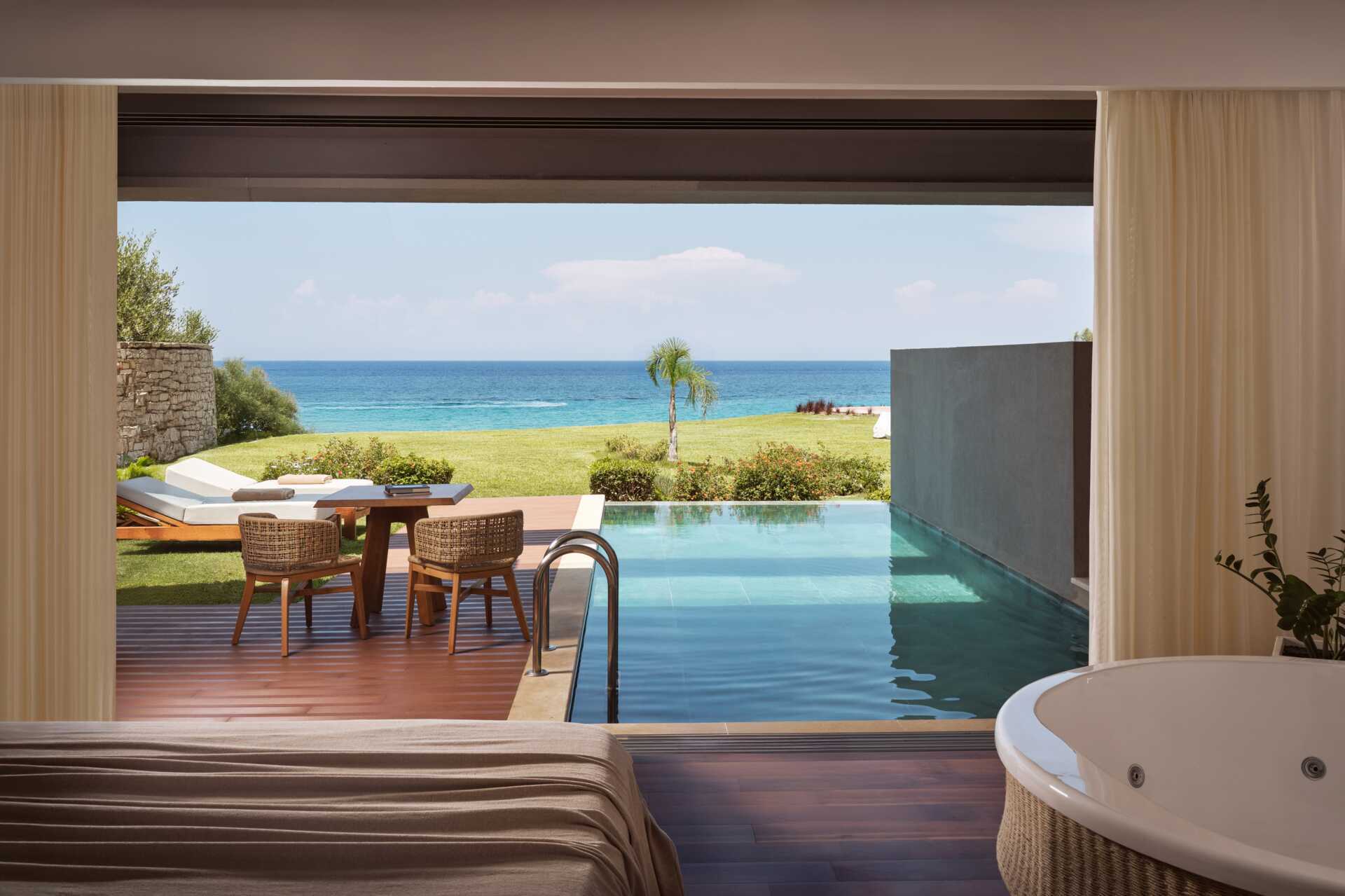 Lyxiga Lesante Blu – The Leading Hotels of the World ligger i lugna omgivningar i Tragaki på nordöstra Zakynthos. Här finns ett stort poolområde med vacker utsikt över havet. Solstolar och parasoller ingår. Poolbaren Ostria serverar grekiska och Medelhavsinspirerade rätter, varma och kalla drycker samt snacks.