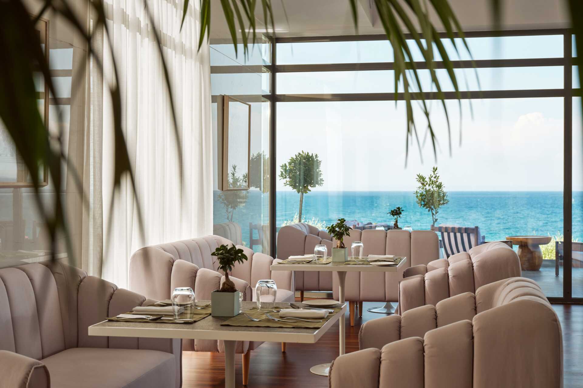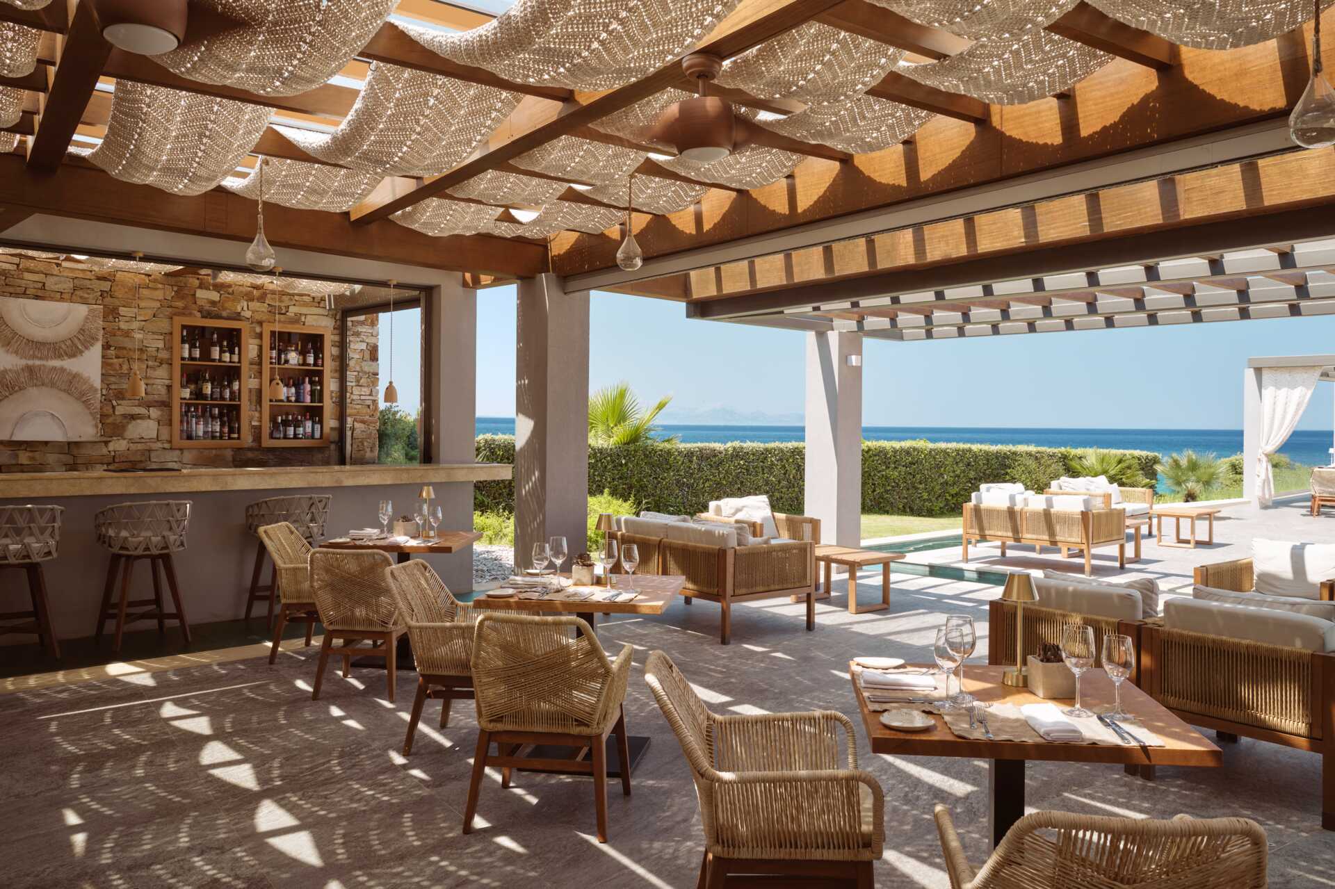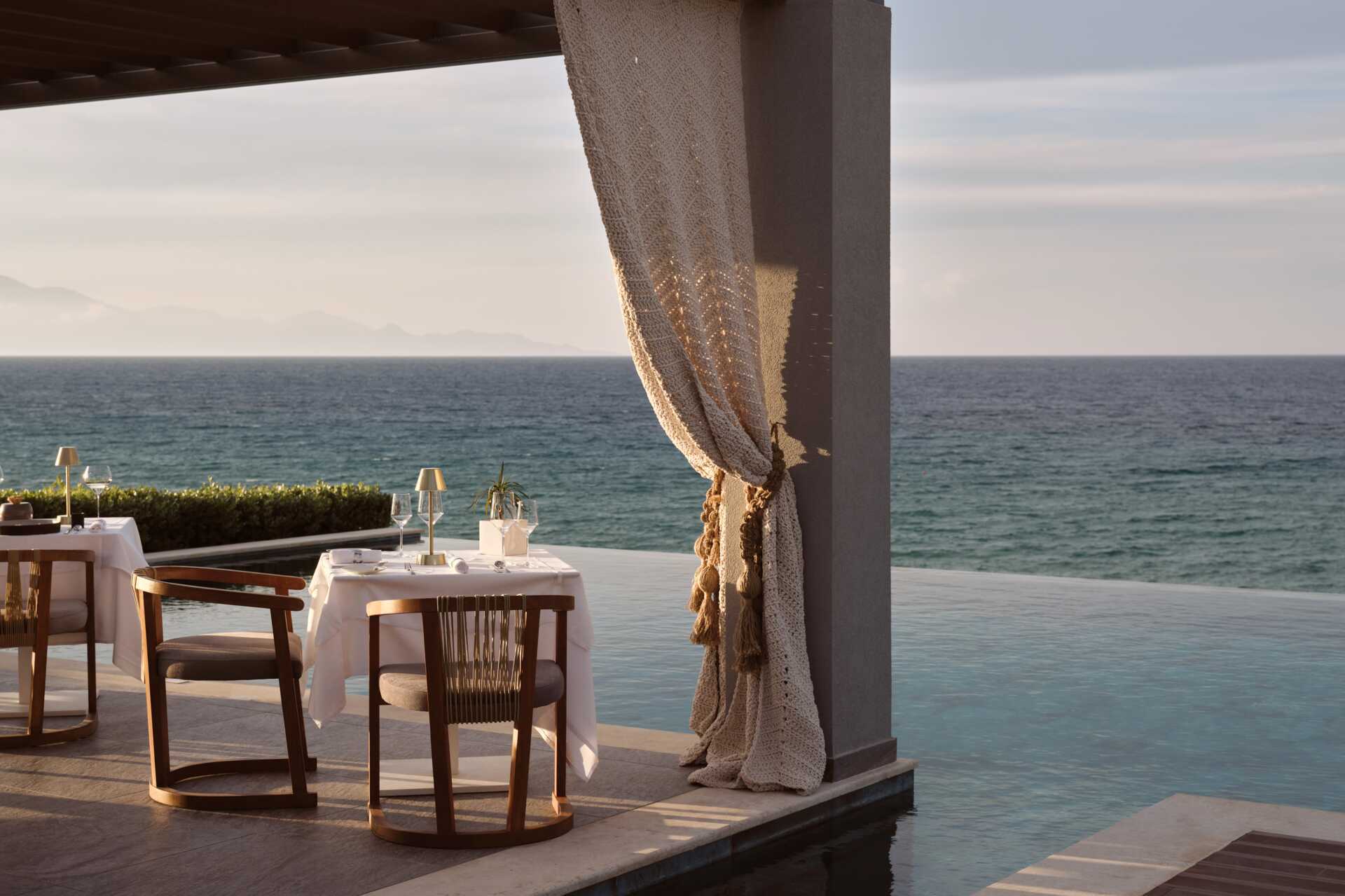 Hotellet har två restauranger. Gaias har ett brett utbud av internationella rätter och Melia har grekiska specialiteter på menyn. Det finns också en lobbybar och en strandbar som serverar goda drinkar till sent in på småtimmarna. Vårdad klädsel - långbyxor för män vid middagarna.
