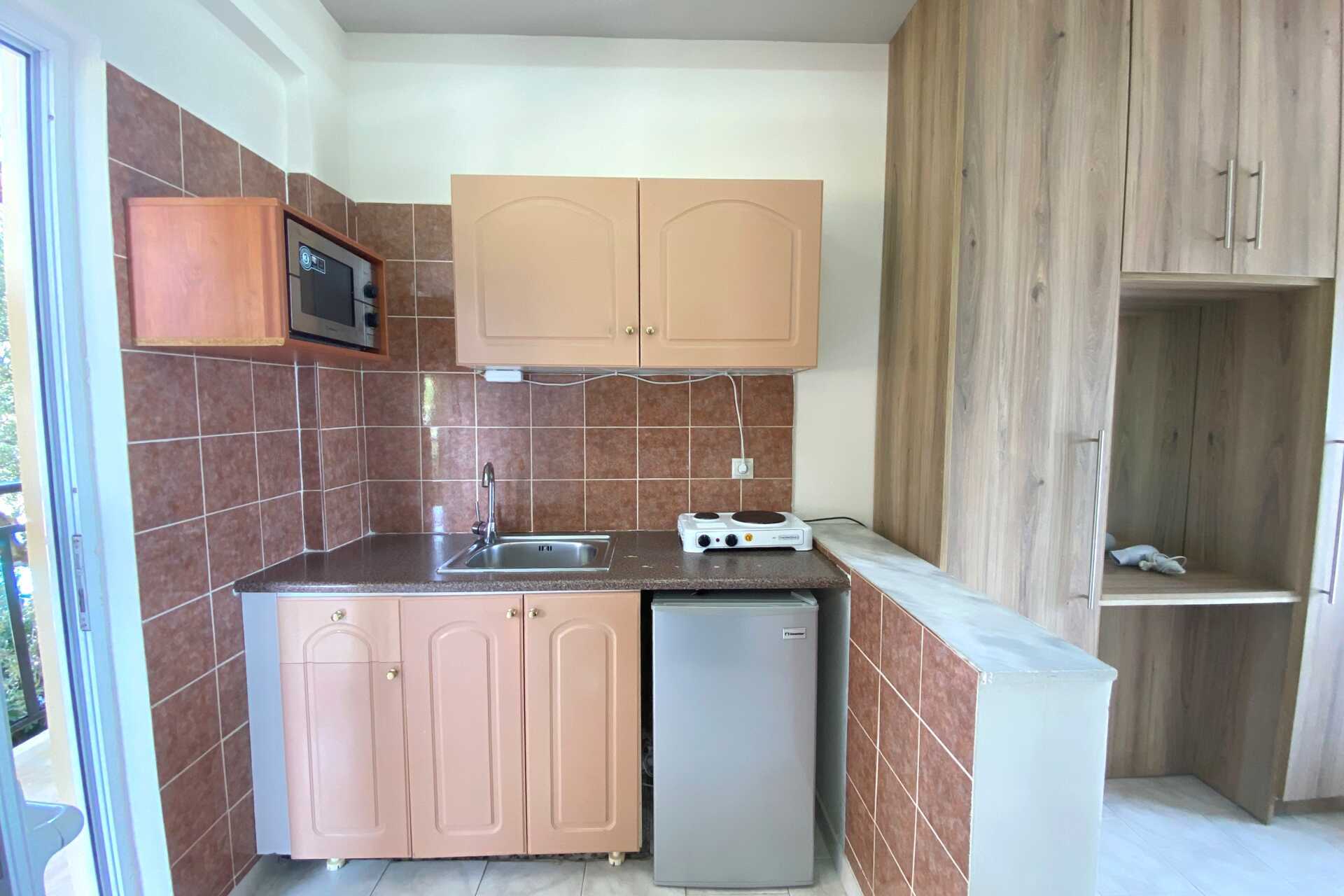 Enrumslägenhet med balkong eller markbalkong. Sovrum kombinerat med minikök. Två enkelsängar. Möjlighet till extrabädd i enkelsäng. Minikök med kokplattor, kylskåp, vattenkokare och enkel köksutrustning. Wifi ingår. Luftkonditionering och deponering mot avgift. Tv med lokala kanaler. Hårtork. Badrum med dusch och wc. Städning 4 ggr/vecka. Barn under två år räknas in i maxantalet personer i lägenheten.