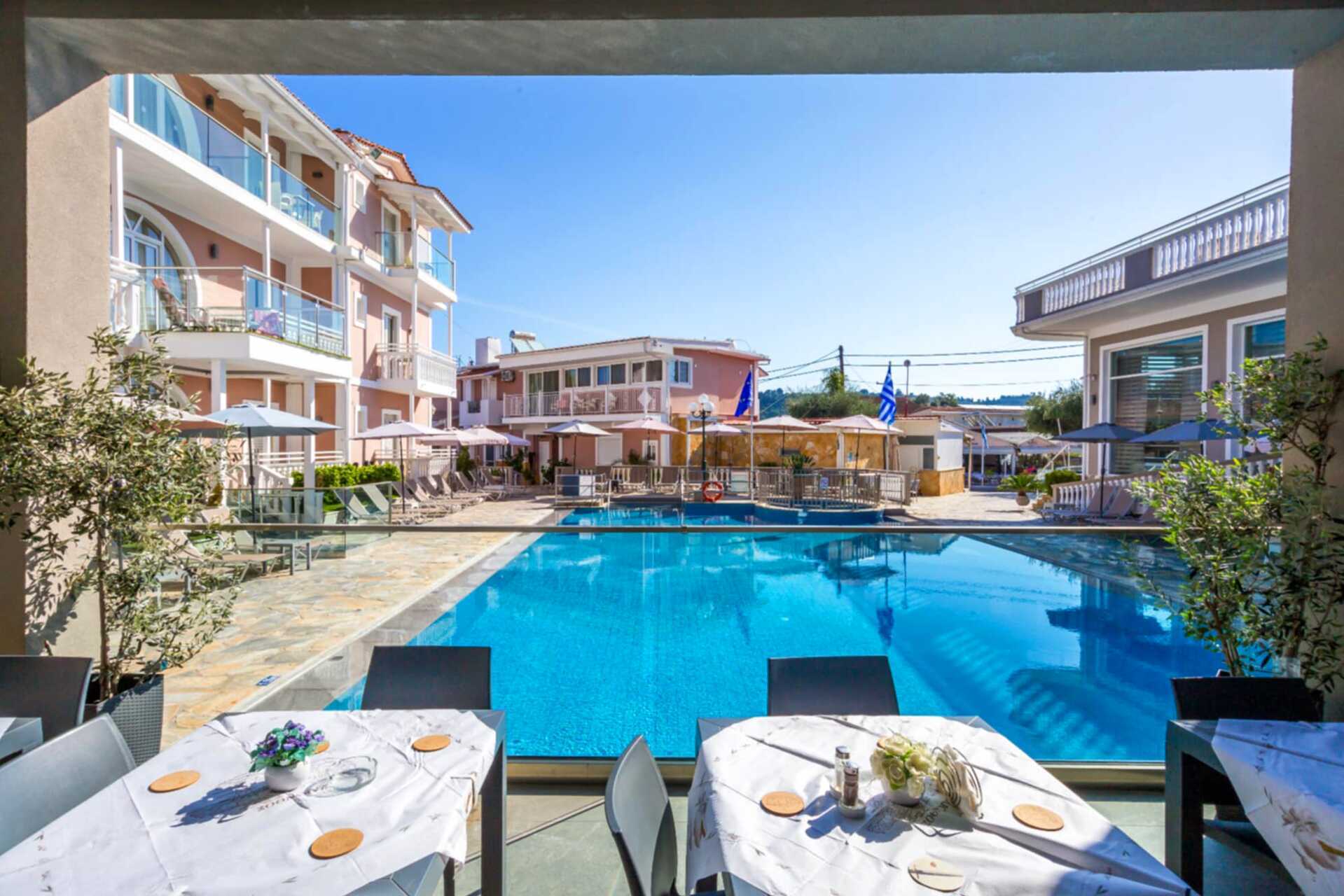 Här bor du i centrala Tsilivi med promenadavstånd till den långgrunda sandstranden. På hotellet finns ett trevligt poolområde med två pooler, varav en med barnsektion samt solstolar och parasoller. Vid poolområdet finns en pool- och snackbar som serverar enklare måltider under dagen.