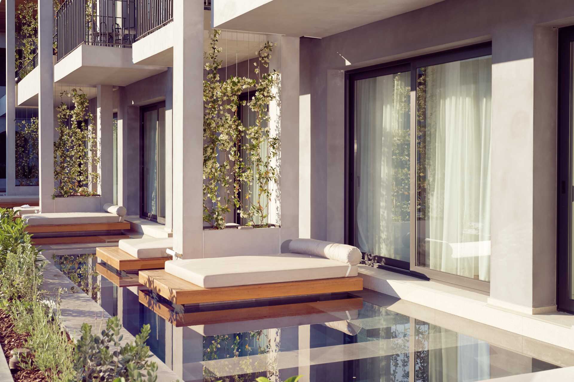 Juniorsvit med markterrass och en privat grundare plungepool. En dubbelsäng. Wifi, luftkonditionering och deponering ingår. Kylskåp. Vattenkokare samt kaffe och te. En flaska vatten ingår per dag. Tv med internationella kanaler och möjlighet att låna en medieströmningsenhet i receptionen för att kunna se på bland annat Netflix i sviten. Badrockar och tofflor. Hårtork. Badrum med dusch och wc. Städning 7 ggr/vecka.