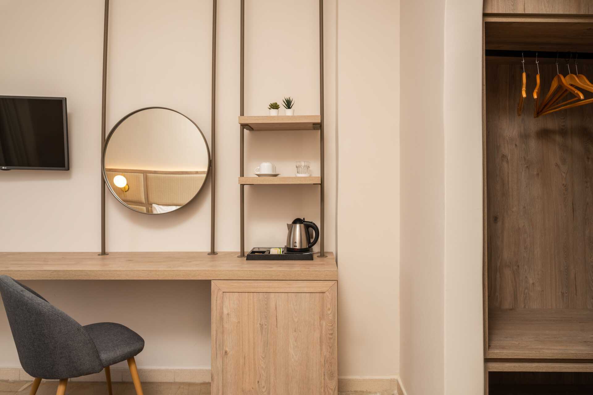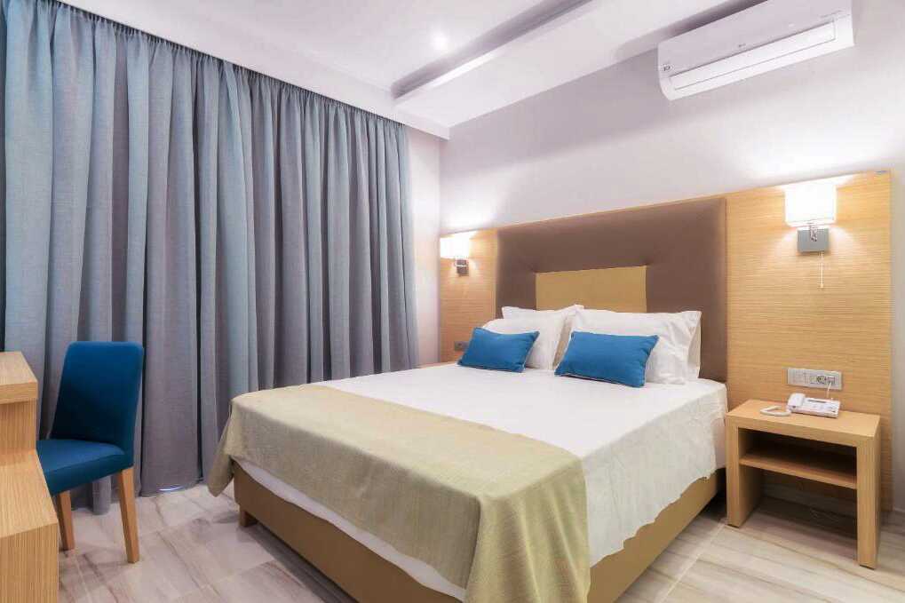 Superiorrum med balkong eller terrass. En dubbelsäng eller två enkelsängar. Möjlighet till extrabädd i bäddsoffa. Wifi, luftkonditionering och deponering ingår. Kylskåp. Tv med internationella kanaler. Badrockar och tofflor. Hårtork. Badrum med dusch samt wc. Städning 7 ggr/vecka.
