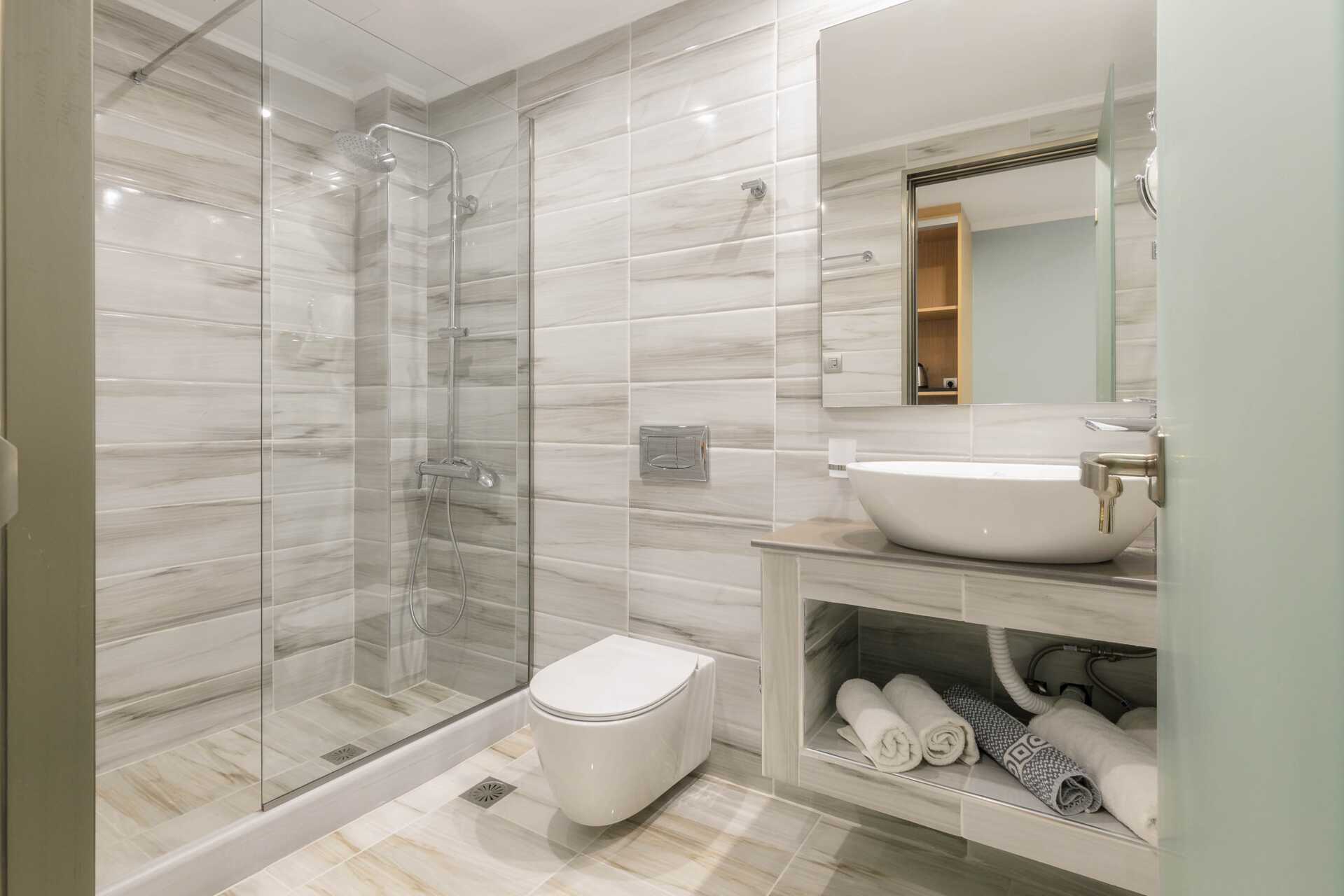 Juniorsvit med balkong eller terrass. En dubbelsäng eller två enkelsängar. Möjlighet till extrabädd i bäddsoffa. Wifi, luftkonditionering och deponering ingår. Kylskåp. Tv med internationella kanaler. Badrockar och tofflor. Hårtork. Badrum med dusch samt wc. Städning 7 ggr/vecka.