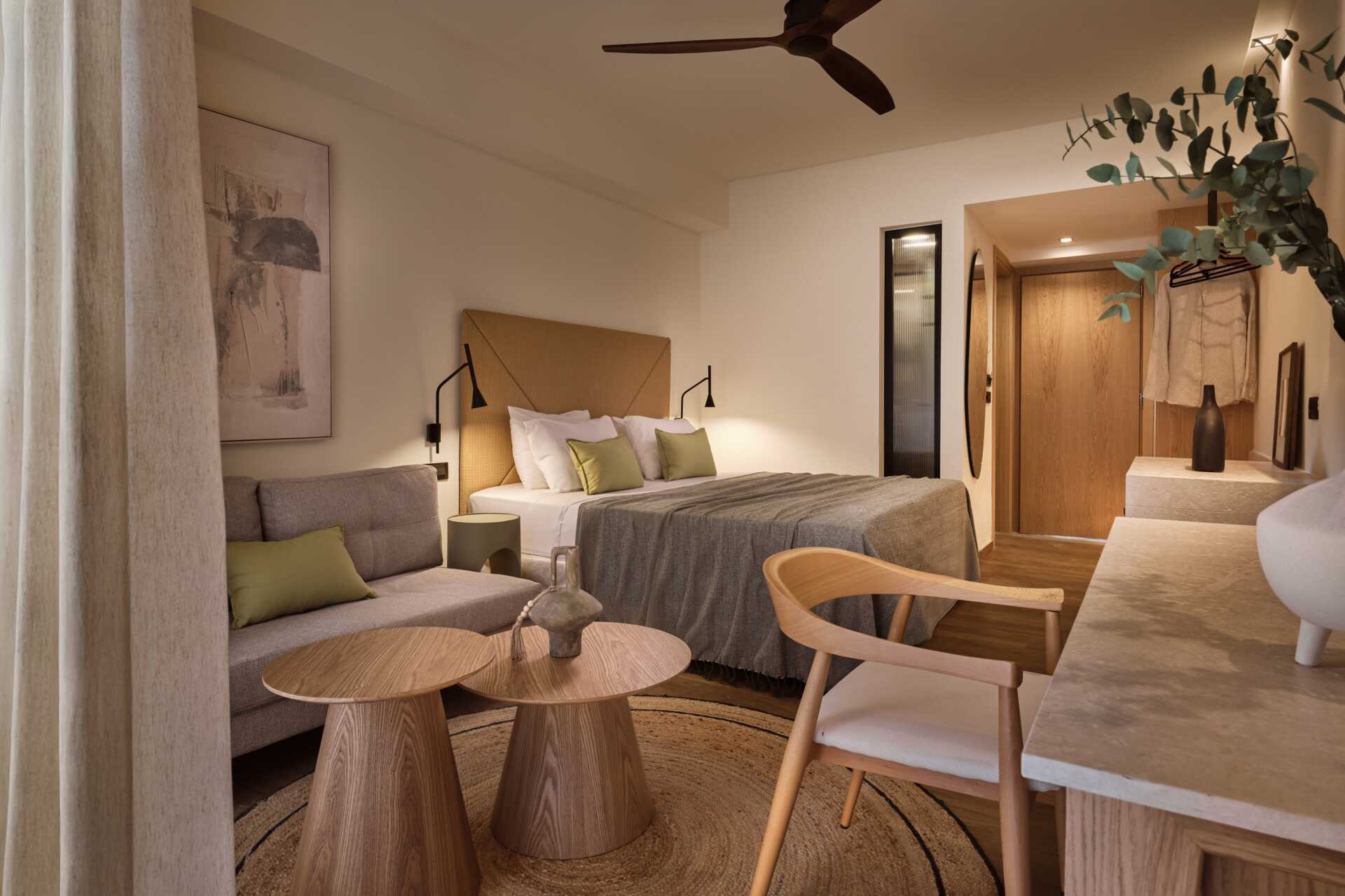 Dubbelrum med balkong. En dubbelsäng eller två enkelsängar. Möjlighet med extrabädd i bäddbar fåtölj. Wifi, luftkonditionering och deponering ingår. Minibar. Vattenkokare samt kaffe och te. Tv med internationella kanaler. Badrockar och tofflor. Hårtork. Badrum med badkar, separat dusch samt wc. Städning 7 ggr/vecka.