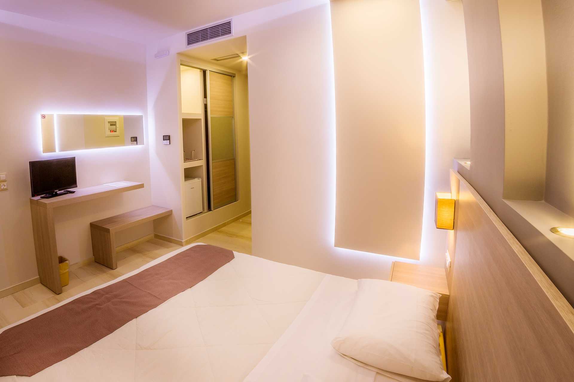 Dubbelrum med balkong eller markbalkong, vissa med poolutsikt. En dubbelsäng eller två enkelsängar. Möjlighet till extrabädd i hopfällbar säng i rum med markbalkong. Kylskåp. Vattenkokare. Wifi, luftkonditionering och deponering ingår. Tv med internationella kanaler. Hårtork. Badrum med dusch och wc. Städning 7 ggr/vecka. Barn under två år räknas in i maxantalet personer i rummet.