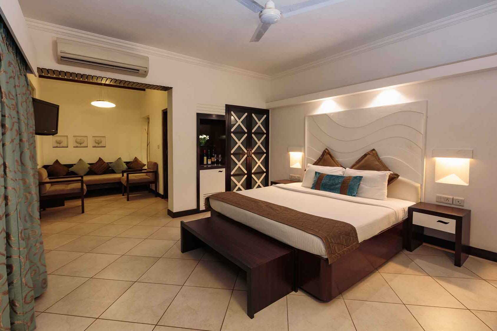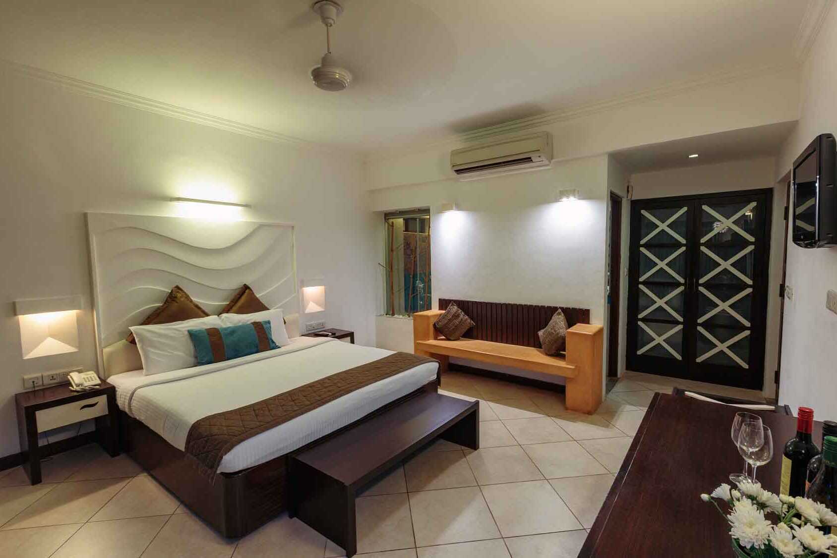 Dubbelrum med balkong, vissa med poolutsikt. En dubbelsäng eller två enkelsängar. Möjlighet till extrabädd i hopvikbar säng. Wifi, luftkonditionering och deponering ingår. Kylskåp. En vattenflaska ingår per dag och fylls på dagligen. Vattenkokare samt kaffe och te. Tv med internationella kanaler. Hårtork. Badrum med dusch och wc. Städning 7 ggr/vecka.