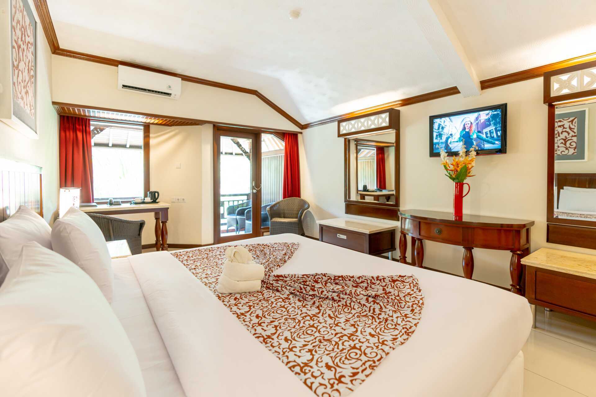 Deluxerum med balkong. En dubbelsäng eller två enkelsängar. Möjlighet till extrabädd i hopvikbar säng. Luftkonditionering och deponering ingår. Wifi mot avgift. Kylskåp. Vattenkokare samt kaffe och te. Tv med internationella kanaler. Hårtork. Badrum med dusch och wc. Städning 7 ggr/vecka.
