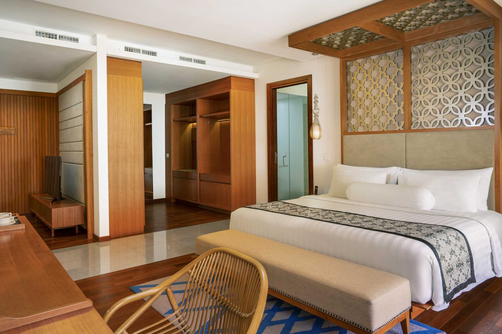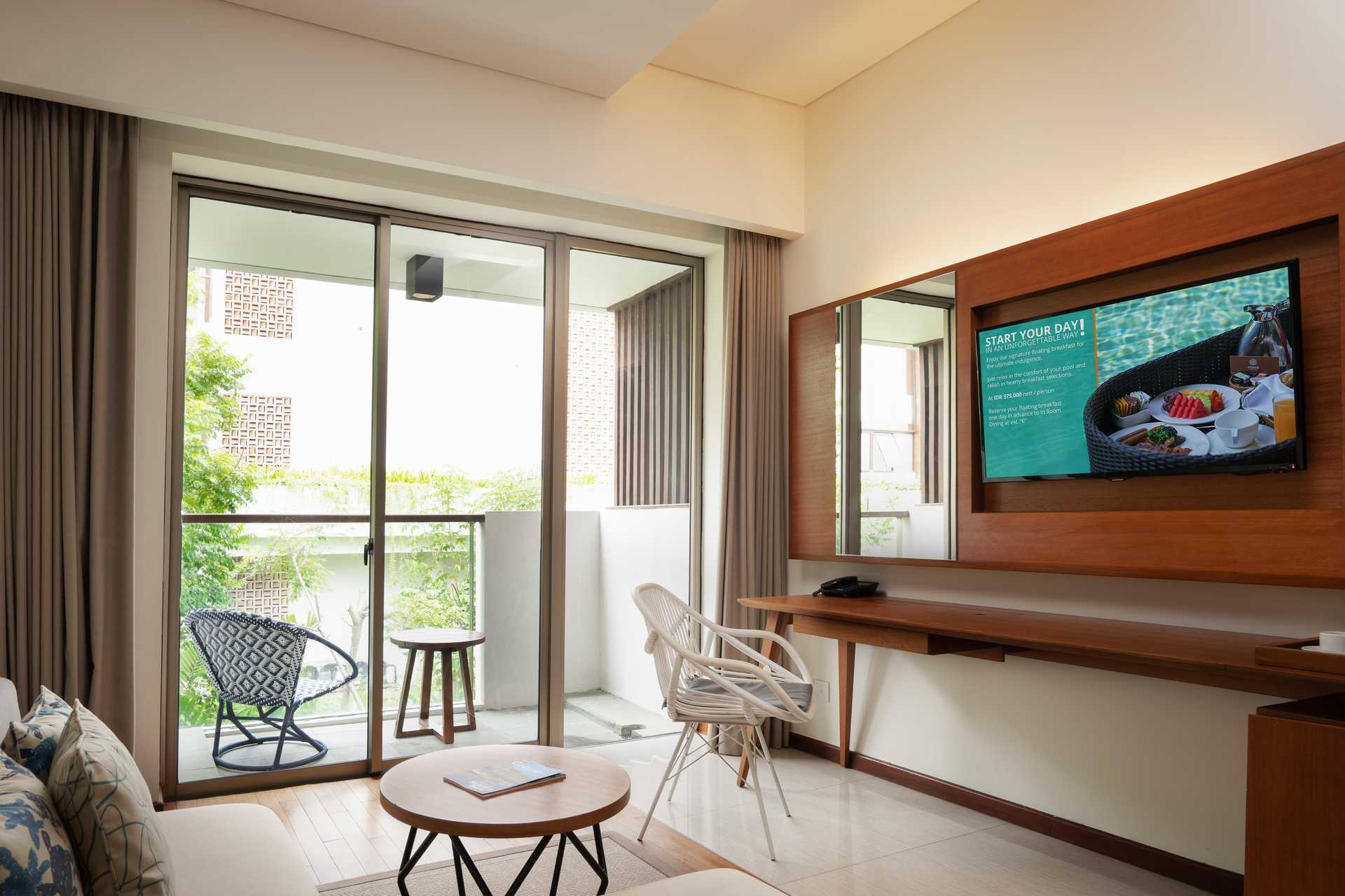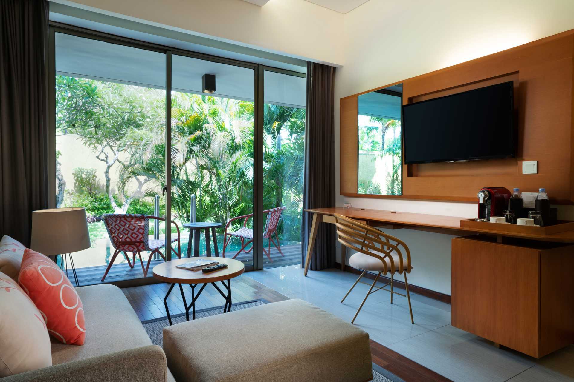 Tvårumsvilla med en avskild markterrass med privat pool. Åldersgräns 12 år. På terrassen finns loungemöbler och solstolar samt en stege ner i poolen. Genom en dörr har du access till en gemensam River Pool. Sovrum och vardagsrum. En dubbelsäng eller två enkelsängar. Möjlighet till extrabädd i hopfällbar säng. Wifi, luftkonditionering och deponering ingår. Minibar. Coffesso kaffemaskin. Bluetooth-högtalare. En tv med internationella kanaler i varje rum. Hårtork. Badrum med badkar, separat dusch samt wc. Städning 7 ggr/vecka.