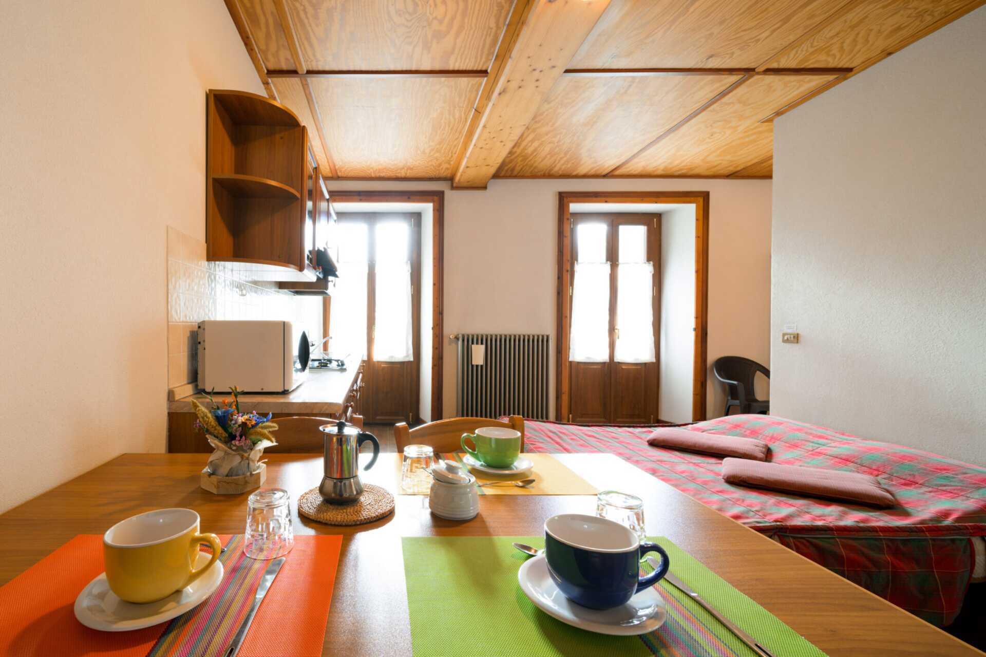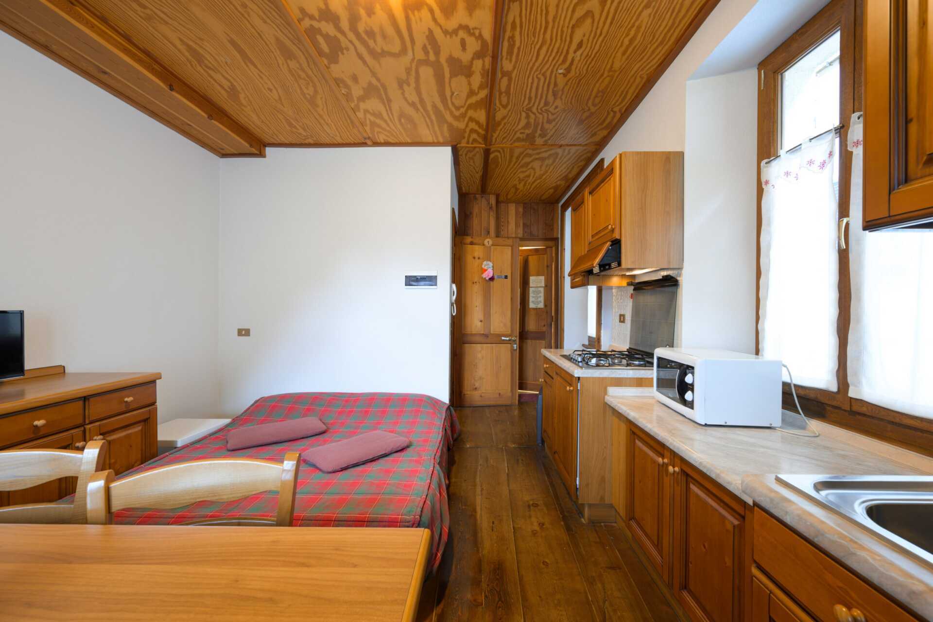Enrumslägenhet utan uteplats. En bäddsoffa med plats för två personer och en enkelsäng. Minikök med kokplattor, kylskåp, mikrovågsugn och enkel köksutrustning. Wifi ingår. Tv med internationella kanaler. Hårtork. Badrum med dusch och wc. Städat vid ankomst, men ingen städning/byte av sängkläder eller handdukar under vistelsen.
