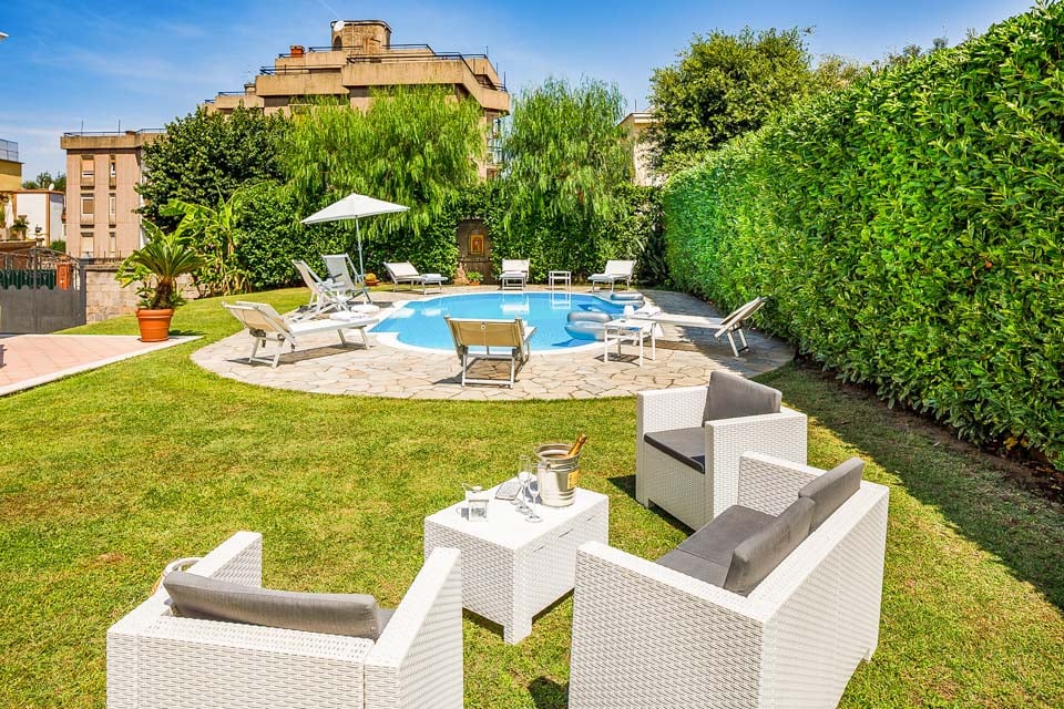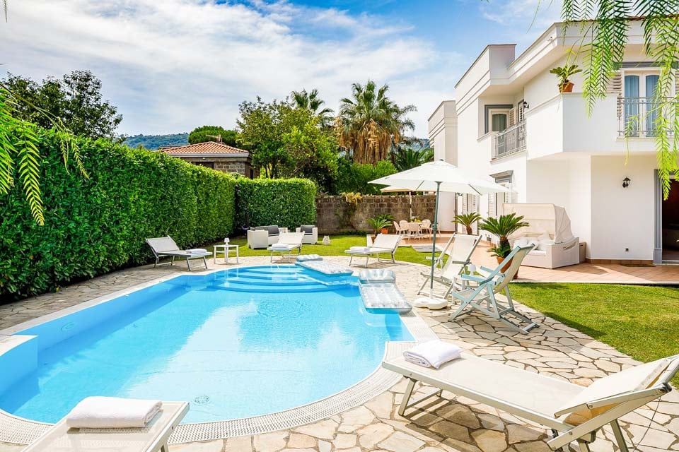 Emerald Courtyard ligger i utkanten av Sorrento och erbjuder en bekväm bas med utrymme att koppla av, leka och umgås. Villan öppnar upp mot en terrassträdgård där långa eftermiddagar enkelt utspelar sig, med en privat pool i hjärtat och poolhanddukar redo för lugna dopp under den italienska solen. Parkering utanför vägen för två bilar gör ankomster och dagsutflykter enkla.