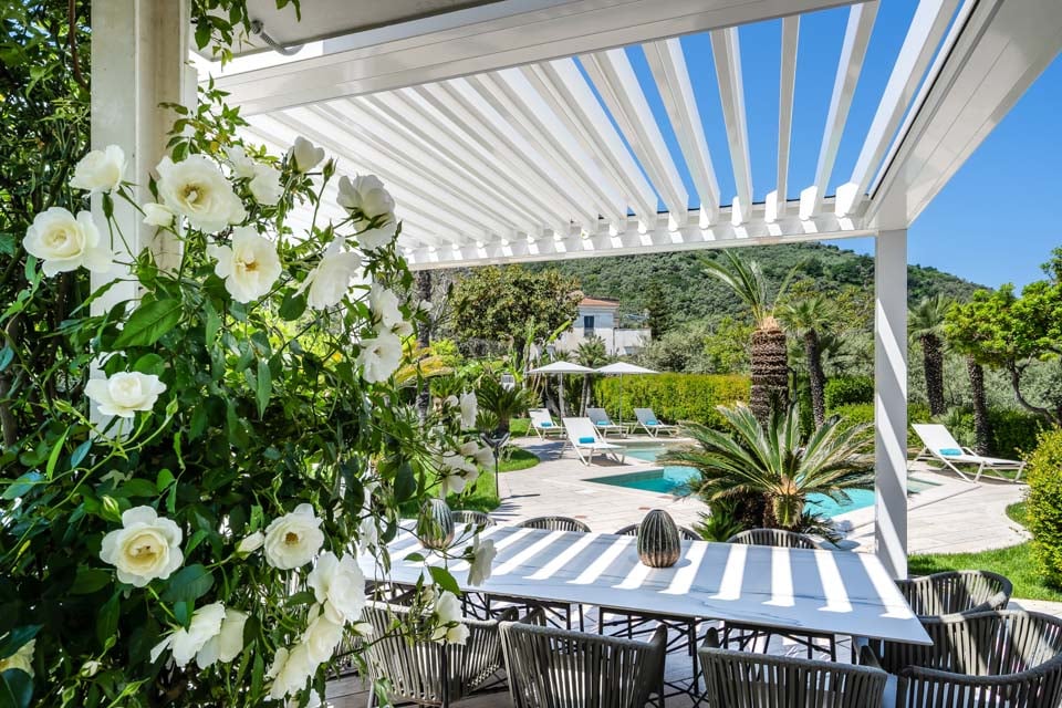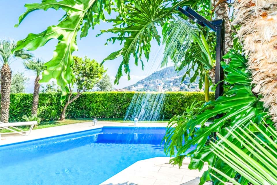 Den slingrande vägen som leder upp till villan är en dröm i sig, förbi livliga byar, grönskande trädgårdar och glimtar av det azurblå havet nedanför. Utomhusområdena kommer garanterat att imponera, med en härlig medelhavsträdgård som blommar med doftande citrusträd, palmer och exotiska blommor. Med stora terrasser på varje våningsplan kommer du att dras till naturen med dess utbud av solstolar och soffor som är gjorda för att varva ner och njuta av de bildsköna panoramautsikterna. Den bländande poolen har nyrenoverats och är lockande för ett eftermiddagsdopp i solskenet för att svalka sig. Om frukost med utsikt låter som din idé om paradiset, bege dig till takterrassen för 360-graderspanorama eller njut av en av de många uteserveringarna. Med en utomhusgrill och vedeldad ugn kan du till och med prova att slänga ihop din egen hemlagade pizza.