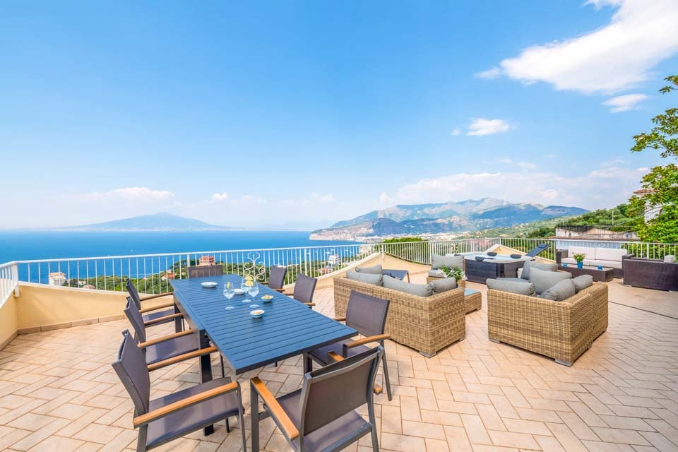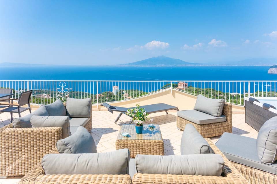 Välkommen till Vesuvius Gaze, en fantastisk oas på en sluttning där varje blick drar dig till det skimrande havet och Vesuvius ikoniska silhuett tvärs över bukten. Denna rymliga villa är utformad för ett enkelt boende, med fyra inbjudande sovrum och fyra badrum, vilket ger alla utrymme att koppla av och förnya sig.