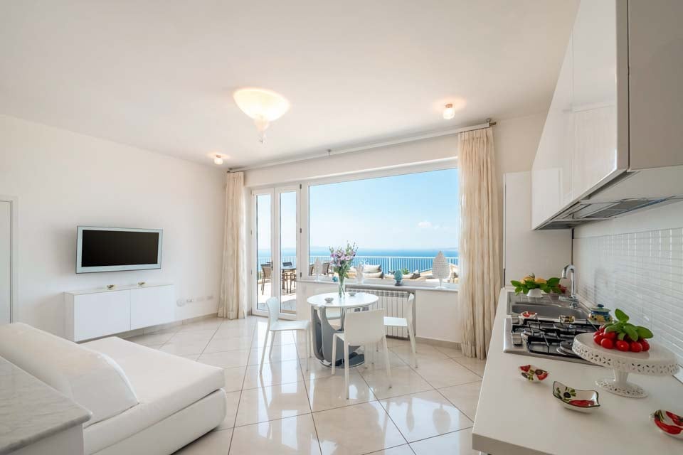 Kliv ut så hittar du terrasser på flera nivåer, som var och en erbjuder ett nytt perspektiv – oavsett om det är att smutta på kaffe medan morgonljuset dansar på vattnet eller att varva ner i bubbelpoolen med oavbruten havsutsikt. Den privata poolen är perfekt för att svalka sig under den italienska solen, med solstolar redo för de lugna eftermiddagarna. Poolhanddukar finns, så du kan bara komma fram och njuta.