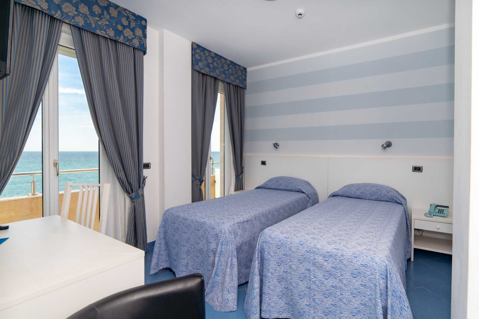 Dubbelrum med balkong, vissa med havsutsikt. En dubbelsäng eller två enkelsängar. Wifi, luftkonditionering och deponering ingår. Minibar. Tv med internationella kanaler. Hårtork. Badrum med dusch och wc. Städning 5 ggr/vecka.