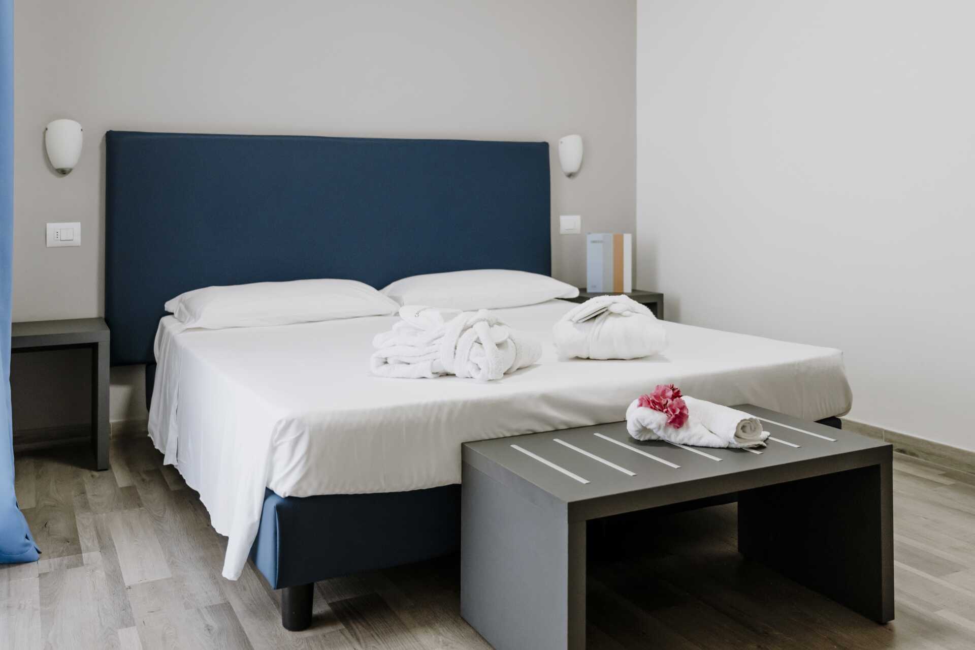 Dubbelrum med balkong eller terass. En dubbelsäng. Möjlighet till extrabäddar i enkelsäng eller bäddsoffa. Wifi, deponering och luftkonditionering ingår. Minibar. Tv. Hårtork. Badrum med dusch samt wc. Städning 5 ggr/ vecka
