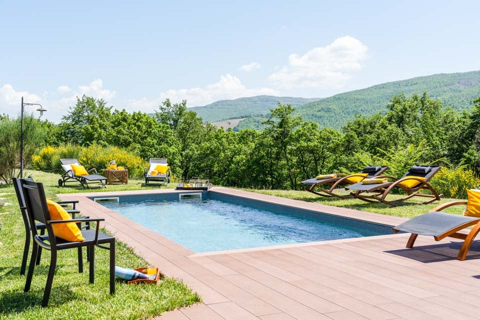Med sex rymliga sovrum, inklusive vackert inredda mastersviter med tillgång till terrassen, och fem elegant designade badrum, rymmer villan bekvämt upp till 12 gäster. De öppna vardagsrummen badar i naturligt ljus, med mysiga sittgrupper, rustika träbjälkar och ett stort öppet kök som är perfekt för att förbereda toskanska festmåltider.