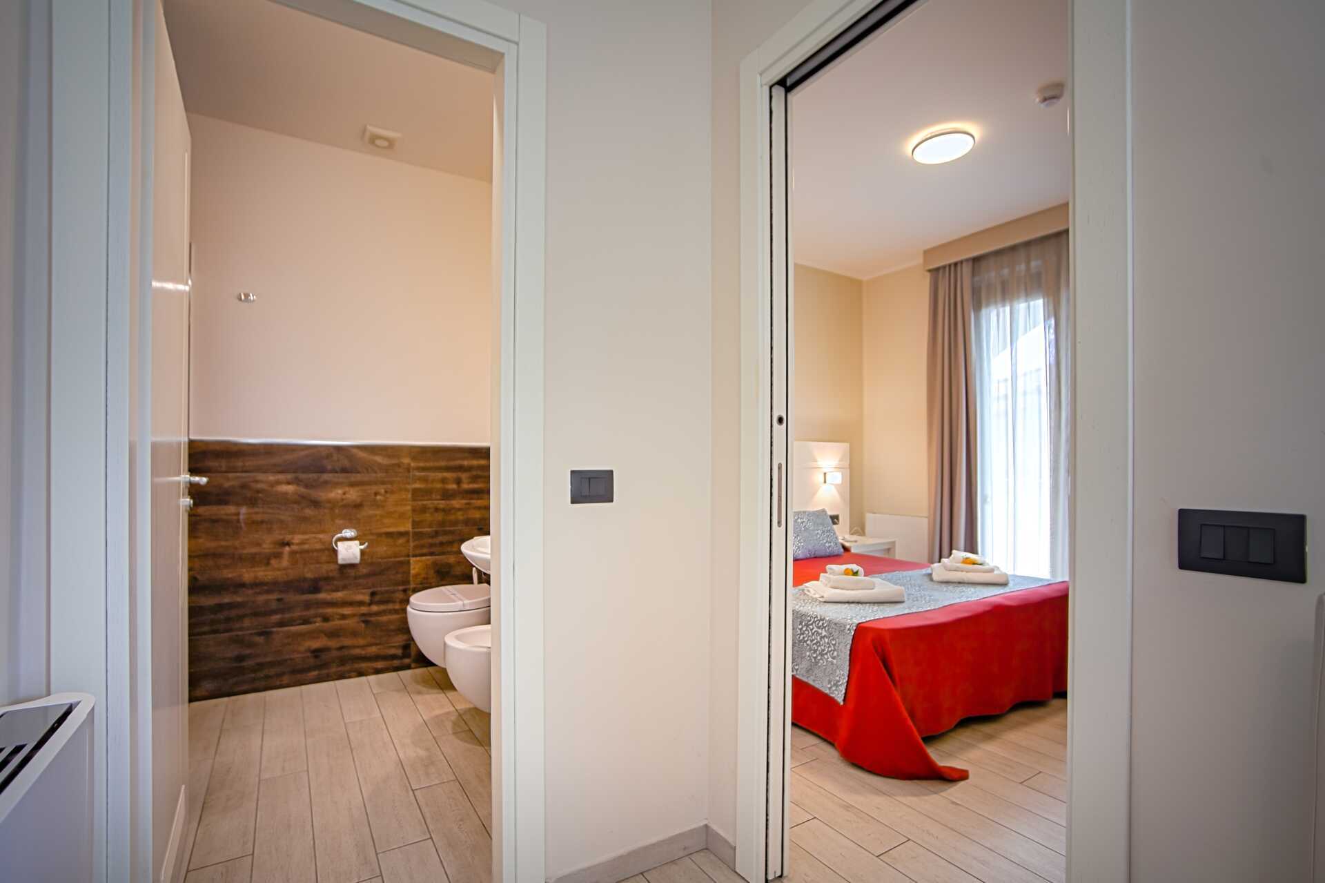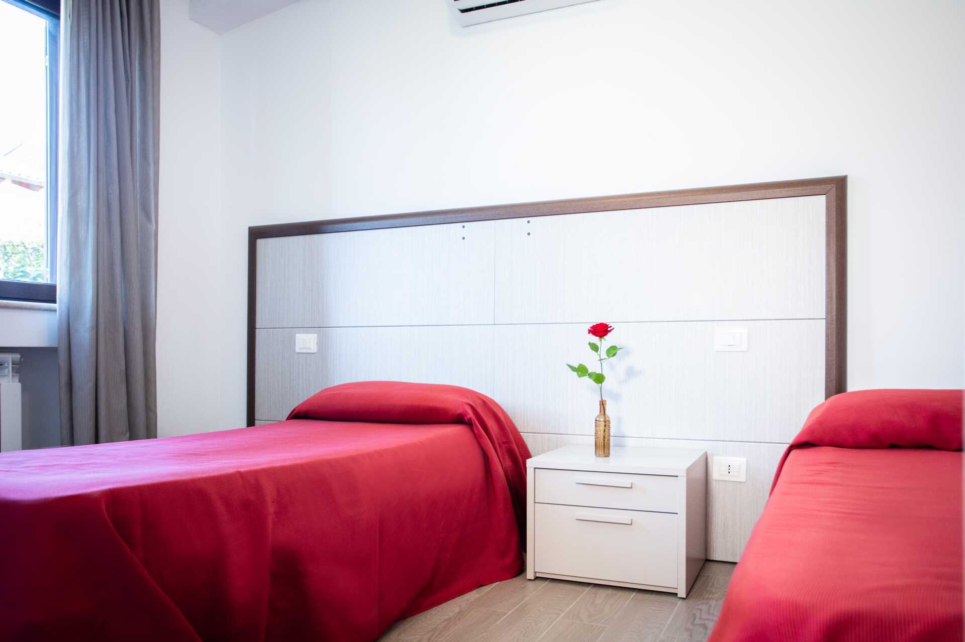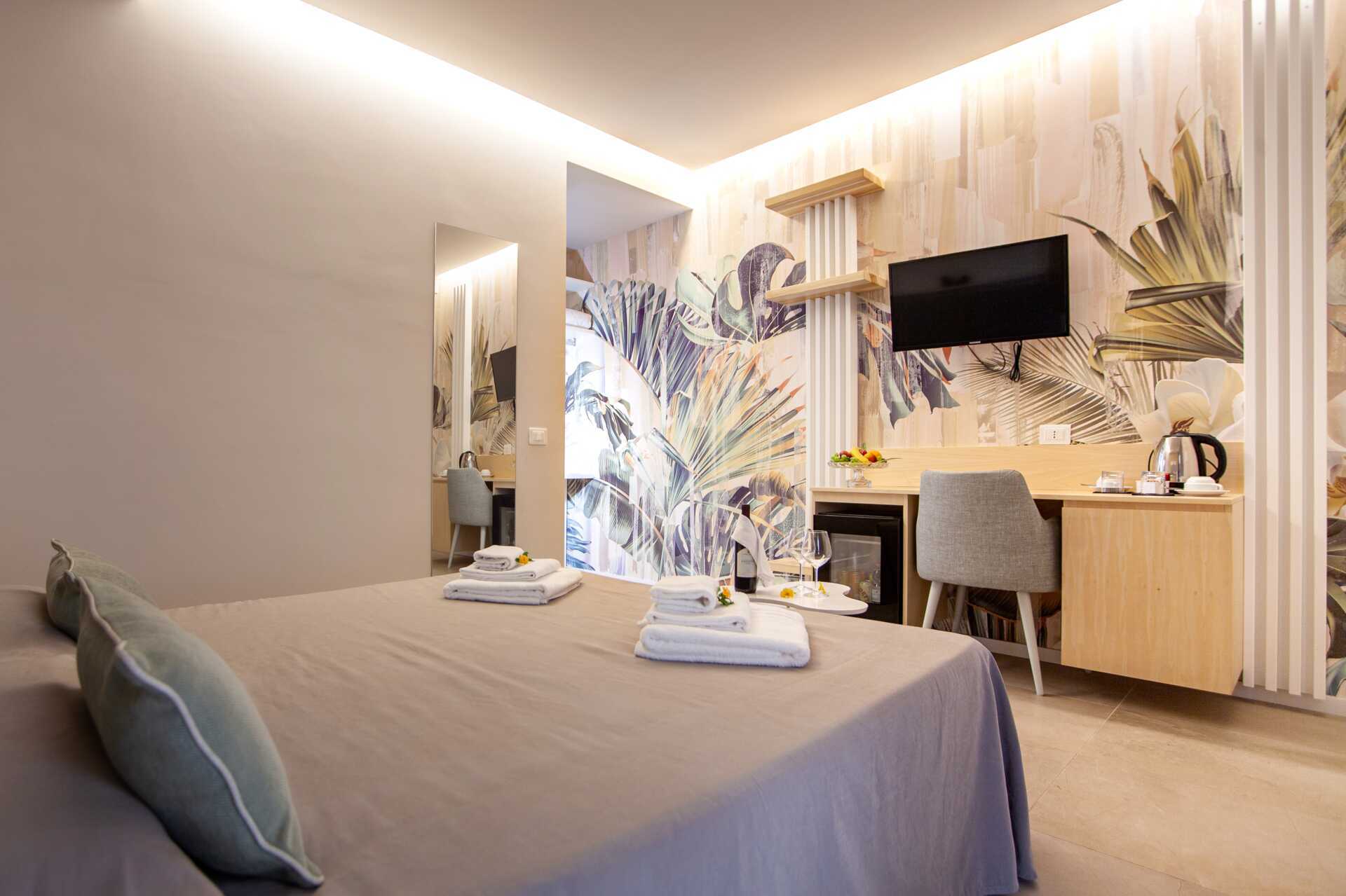 Dubbelrum med balkong eller terrass. En dubbelsäng eller två enkelsängar. Möjlighet till extrabäddar i bäddsoffa. Wifi, luftkonditionering och deponering ingår. Vattenkokare. Kylskåp. Tv med lokala kanaler. Hårtork. Badrum med badkar eller dusch samt wc. Städning 7 ggr/vecka.