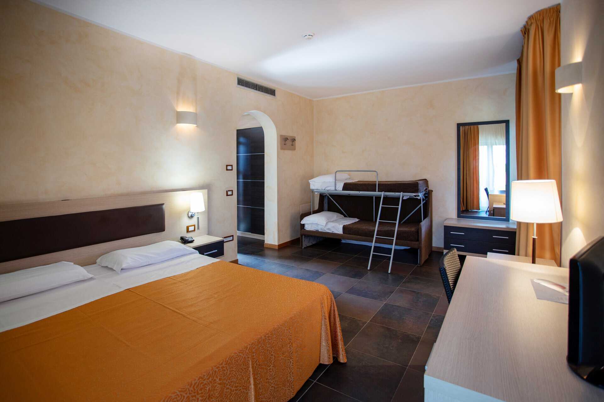 Familjerum med balkong eller terrass. En dubbelsäng. Möjlighet till extrabäddar i bäddsoffa. Wifi, luftkonditionering och deponering ingår. Kylskåp. Tv med lokala kanaler. Hårtork. Badrum med dusch samt wc. Städning 7 ggr/vecka.