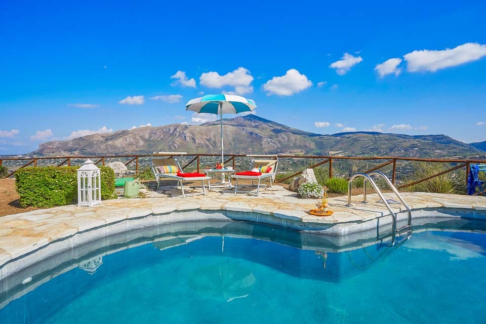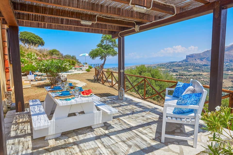 Gå ut och blicka ut över det azurblå vattnet mot Castellammare, där kullarna möter havet. Utsikten är inget annat än hisnande. Poolen, omgiven av en rustik stenterrass, blir din privata oas, kantad av solstolar med utsikt över havet nedanför. Den täckta verandan på framsidan av villan har bekväma sittplatser och möjlighet att äta utomhus, perfekt för att tillbringa kvällarna med att varva ner.