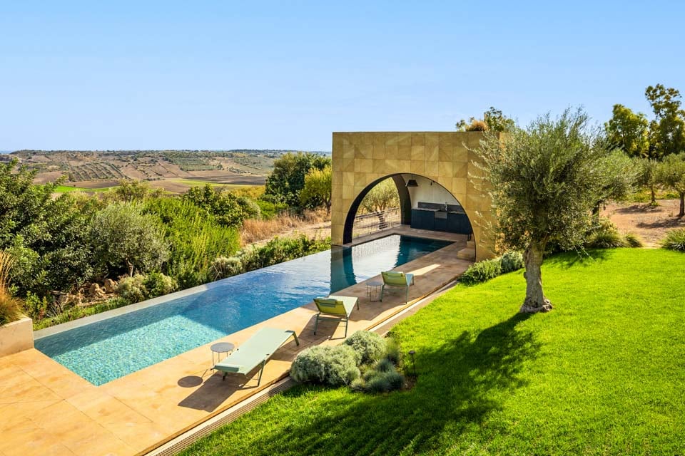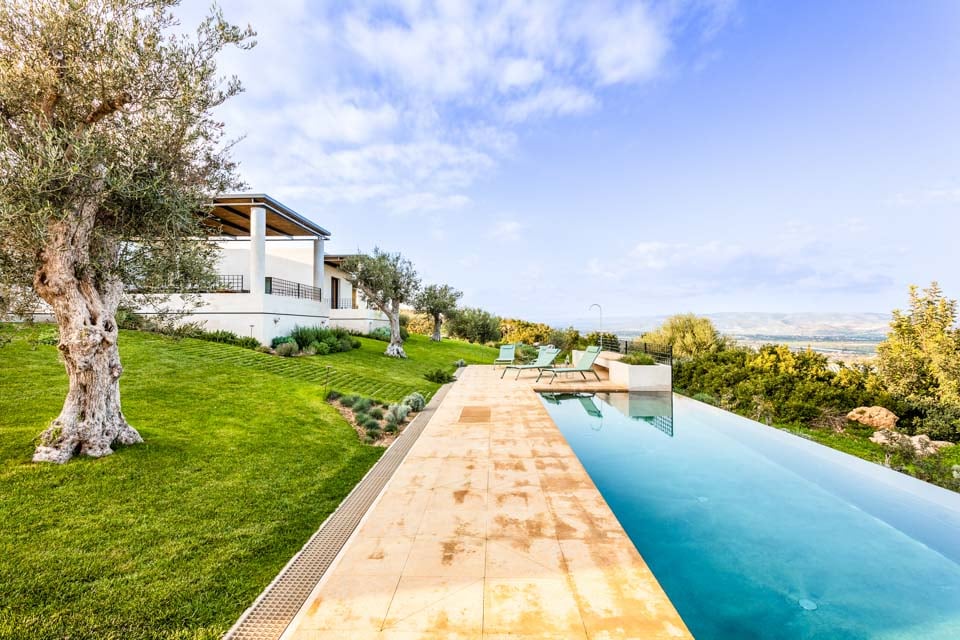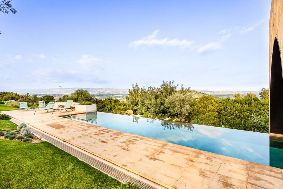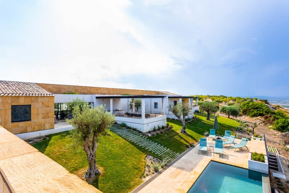 Inbäddat i de fridfulla kullarna i östra Sicilien, strax utanför den charmiga staden Rosolini, erbjuder denna moderna villa på landet en avkopplande tillflyktsort med hisnande utsikt över böljande fält och rustika landskap. Perfekt för dem som söker avskildhet och naturlig skönhet, villans avlägsna läge innebär att en bil är ett måste. Vid ankomst möts du av vår vänliga villarepresentant vid en bestämd mötesplats, som kommer att guida dig resten av vägen till din avskilda oas – lita på oss, resan är väl värd det.