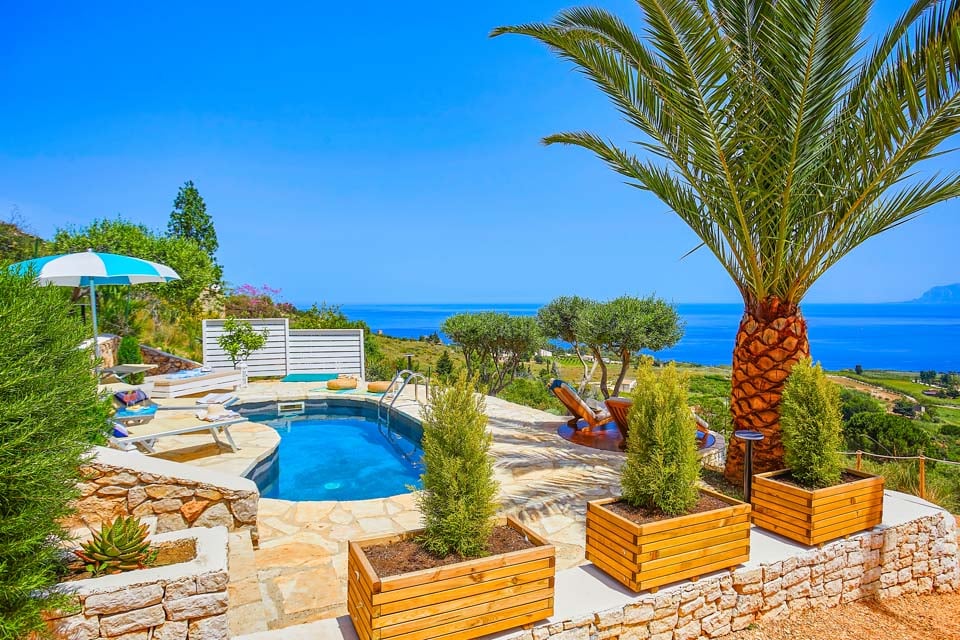 En symfoni av trä, ljus och hav väntar dig på Villa Panorama Palm. En rymlig villa som sömlöst kombinerar modern inredning med traditionell siciliansk charm.