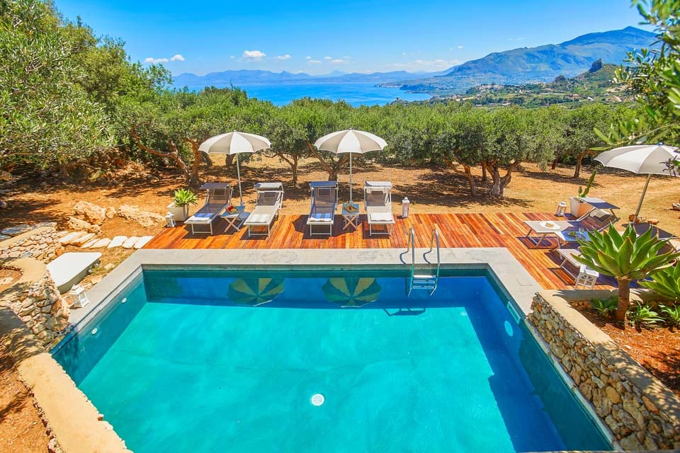 Villan har ett privilegierat läge, belägen bland sin egen olivlund längs den karga kusten i nordvästra Sicilien. Skyddad från kustvindarna av majestätiska berg i bakgrunden, erbjuder den ett panoramautsikt över Castellammare del Golfos förtrollande vik från dess vidsträckta marker.