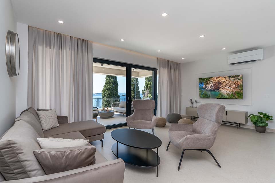 Bekväm sittgrupp, Smart-TV, Luftkonditionering, Matplats, Dörrar till terrass
