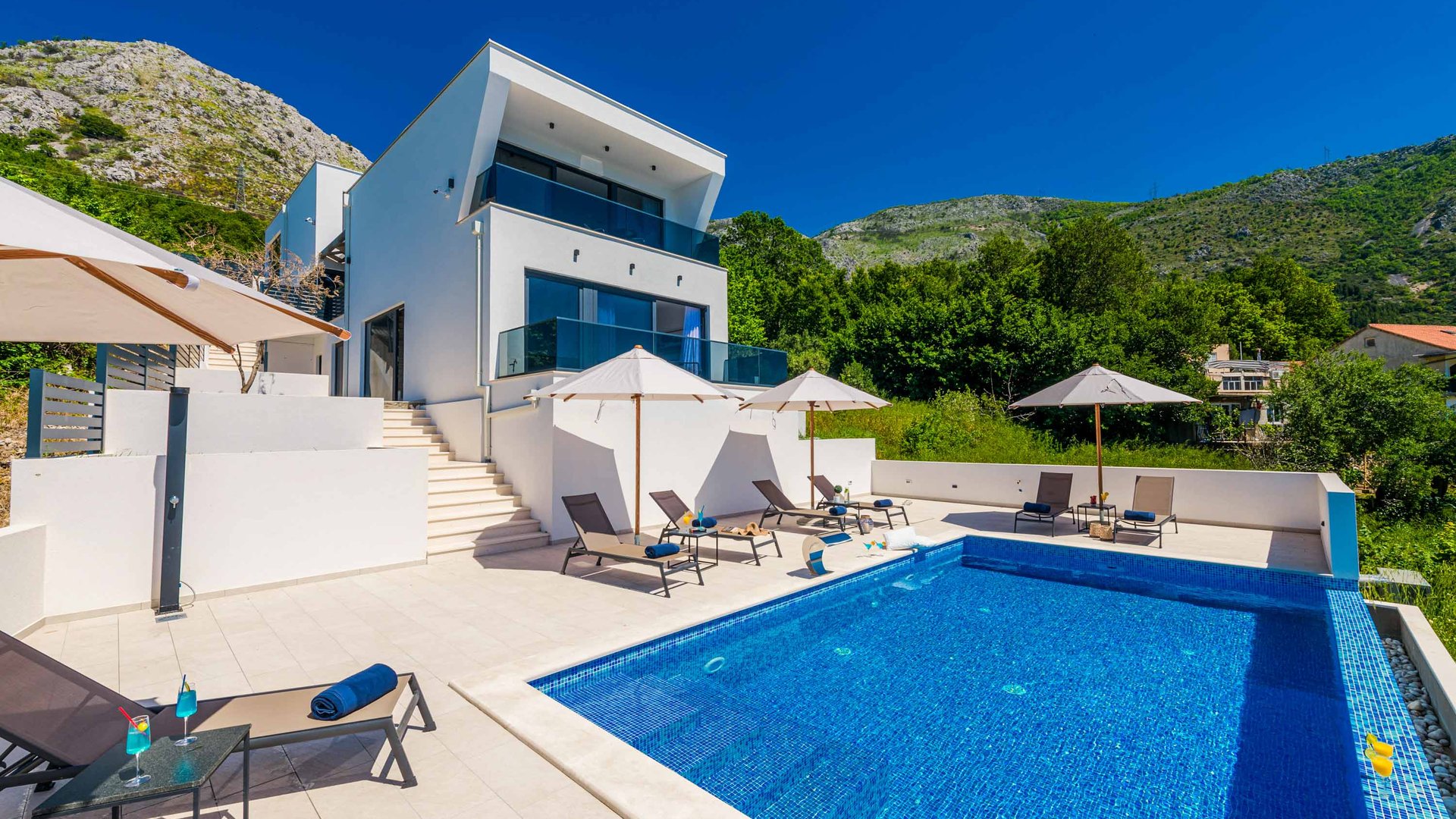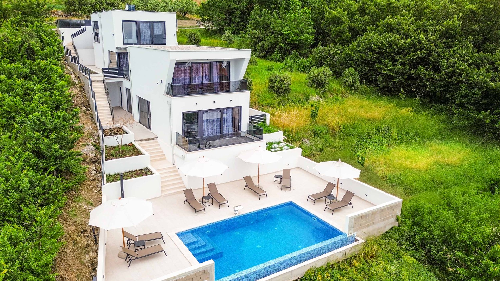 Villa Coastal Bliss erbjuder oöverträffad komfort, med stranden bara 15 minuters promenad bort och ett idealiskt läge på en sluttning med sömlös havsutsikt, och kan vara den perfekta basen för din reträtt i Kroatien.