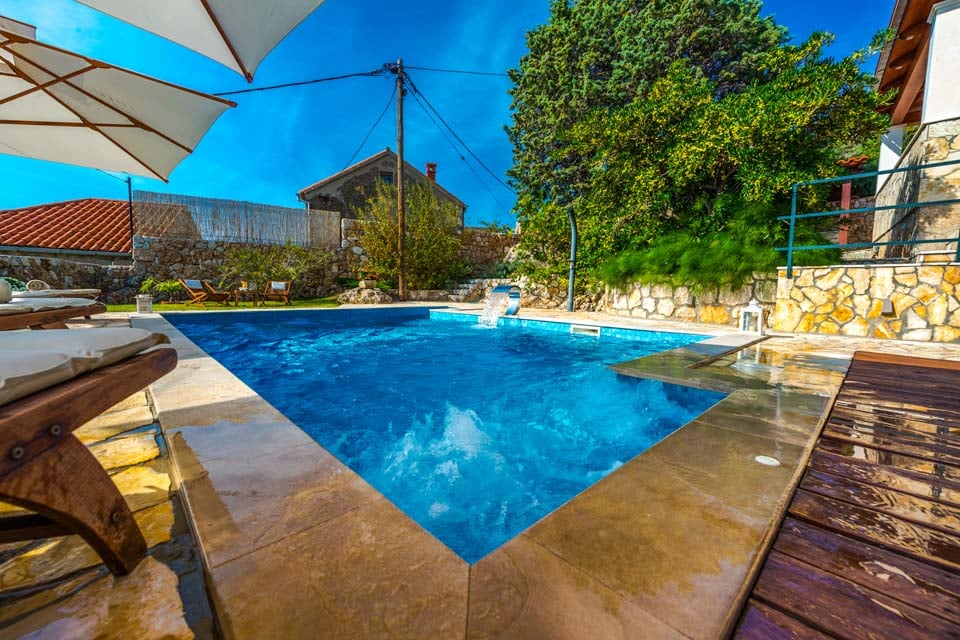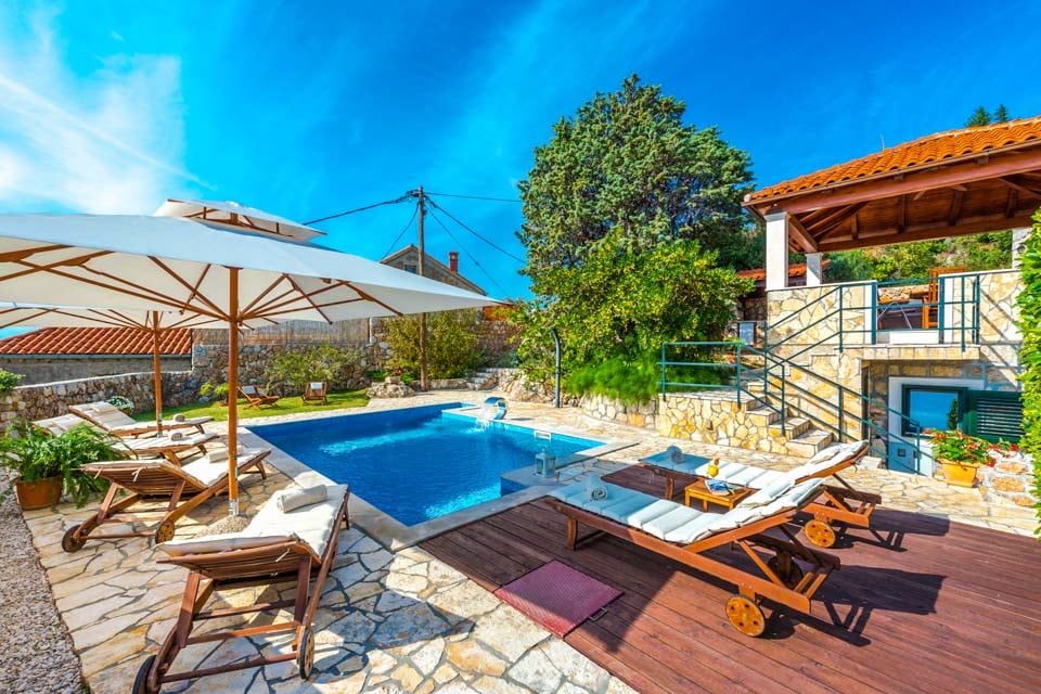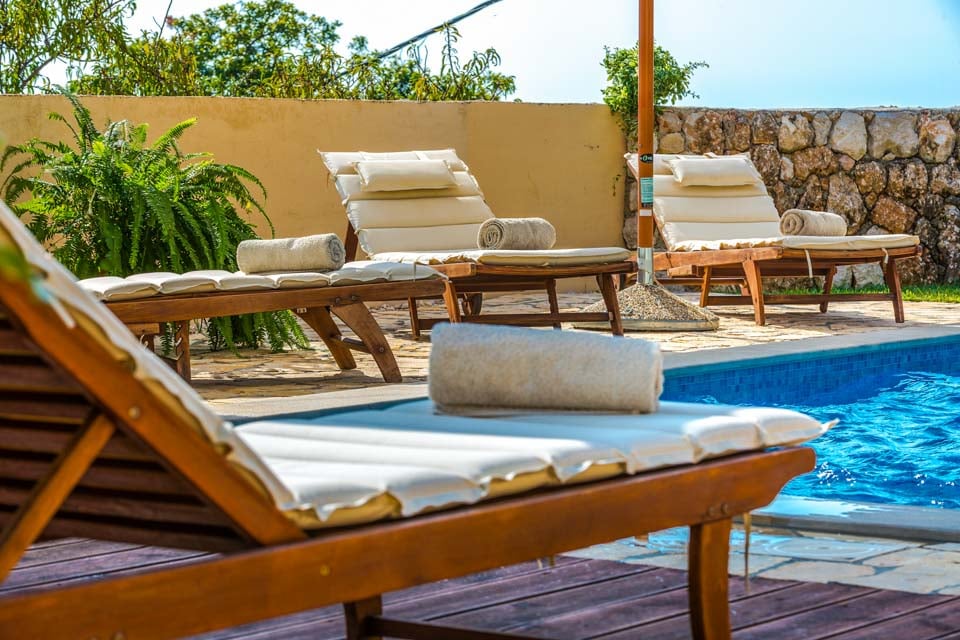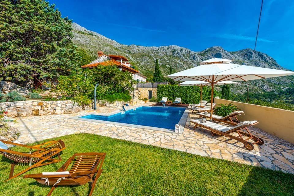 Så fort du kommer ut på fältet kommer det vara svårt att slita sig ifrån denna del av det kroatiska paradiset. Det finns flera terrasser där du kan luta dig tillbaka och njuta av det fenomenala, vidsträckta landskapet. Trädgårdsområdet är pittoresk och fridfullt, flankerat av grönska och palmer, med en stor gloriette-terrass perfekt för att smutta på ett morgonkaffe medan du blickar ut över Mlini-bukten. Om middag vid solnedgången låter som din idé om himlen, finns det en skuggig pergola med ett matbord i trä och en utomhussoffa för att njuta av den fantastiska havsutsikten. Det finns till och med ett sommarkök med en stor stengrill och ett utomhuskylskåp för att slänga ihop festmåltider i den friska havsluften. Simbassängen är storslagen och majestätisk, med romerska trappor och en massagebänk för avsvalkning i ren njutning.