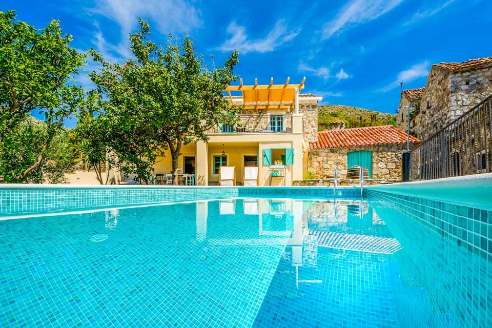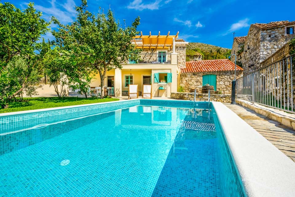 Detta charmiga stenhus togs kärleksfullt bort förra året och har lyckats behålla sin autentiska kroatiska karaktär, med rustika stenfasader, klarblå fönsterluckor och terrakottaröda tak. Interiören återspeglar områdets livliga historia, full av typiska dalmatiska inslag med fräscha vitkalkade väggar, originalbjälkar och mörka trämöbler. De två vardagsrummen är varma och hemtrevliga, med plyschiga soffgrupper utspridda med fluffiga kuddar, inredda med charmig inredning och klassiska antikviteter. Det finns till och med några extra lyxiga bekvämligheter, som en PlayStation och en bredbands-TV, perfekt för att underhålla barnen. Köket är så mysigt som det kan bli, med gamla träskåp och vitvaror i retrostil. En trätrappa leder dig till de fyra sovrummen med dubbelsäng och eget badrum, alla med imponerande modern stil med autentiska inslag.