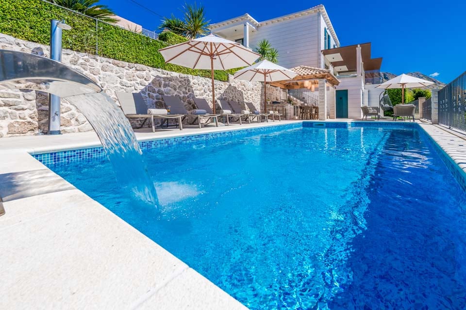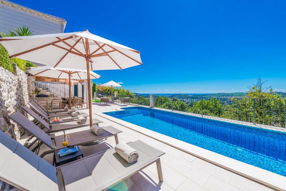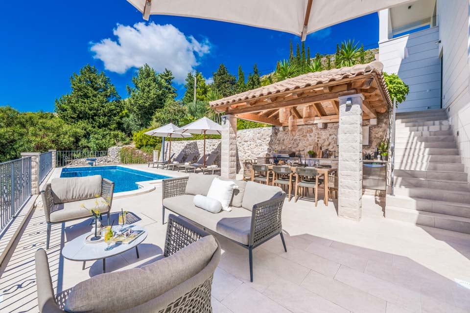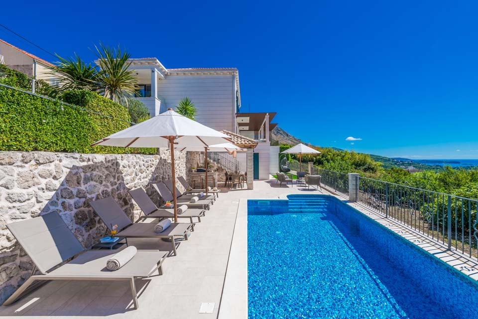 En pärla på Dubrovniks riviera, belägen på en kulle, har den utformats för att dra nytta av det fenomenala kroatiska landskapet. Gömt utanför turiststråken i den vidsträckta dalmatiska landsbygden, är du fortfarande nära händelsernas centrum, med den historiska staden Dubrovnik bara en femton minuters bilresa bort. Denna medeltida stad är värd en dagsutflykt, dränkt i historia med autentiska restauranger och kaféer invävda mellan historiska kyrkor, antika torg och smulande stadsmurar. Ännu närmare ligger Mlini-bukten, där du kan utforska den vackra kaféfyllda strandpromenaden och den lilla hamnen som kantar den vackra stenstranden.