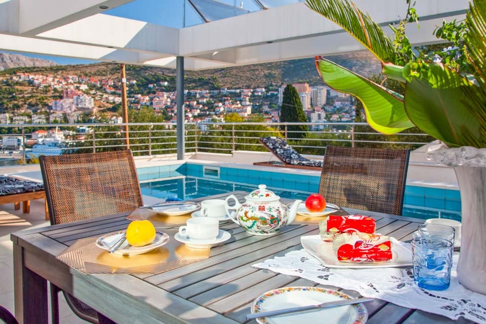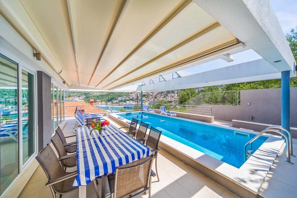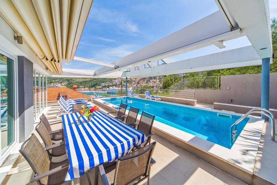 Hoppa ner i det svalkande vattnet i din privata pool och hänförs av den otroliga utsikten som omger dig. Den fantastiska marinan ligger strax utanför förorterna, med enorma kryssningsfartyg och mindre båtar som lägger till under hela dagen. Strax bortom ligger de tornande bergen, en riktig njutning för ögat när man sitter i Dubrovniks förorter.