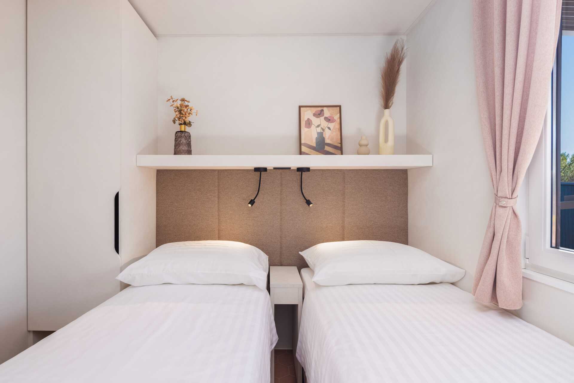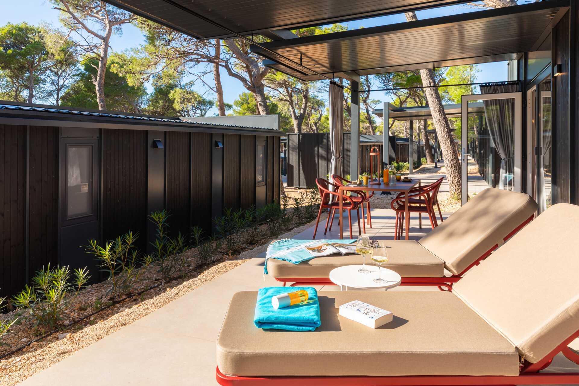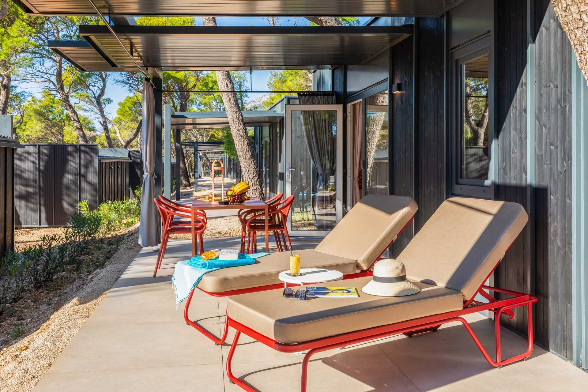 Trerumslägenhet superior med markterrass med solsängar. Två separata sovrum, varav ett med en dubbelsäng och ett med två enkelsängar. Bäddsoffa. Köksdel med kylskåp, spis, vattenkokare, kaffemaskin, diskmaskin och enklare köksutrustning. Wifi, luftkonditionering och deponering ingår. Tv. Hårtork. Två badrum med bad/dusch och wc. Städning 1 gång per vecka. Barn under två år räknas in i max antal personer i rummet. Trerumslägenheter superior är belägna centralt på området, nära poolen och lekplatsen.