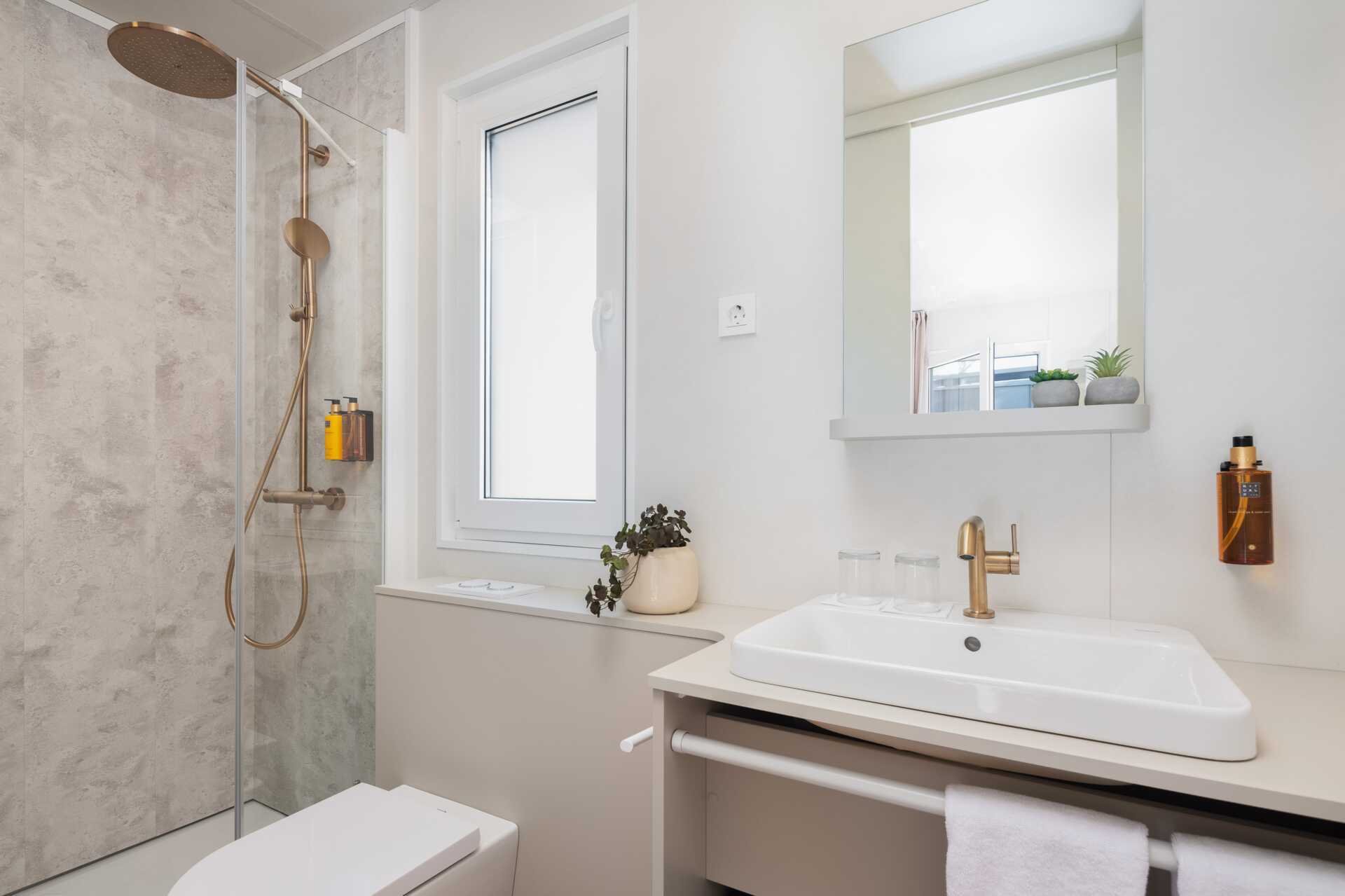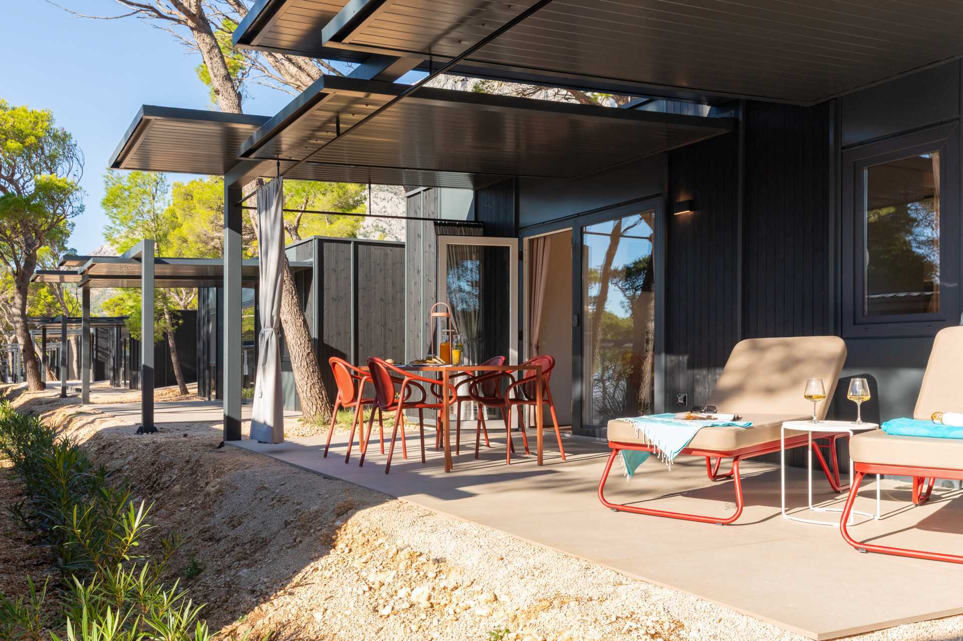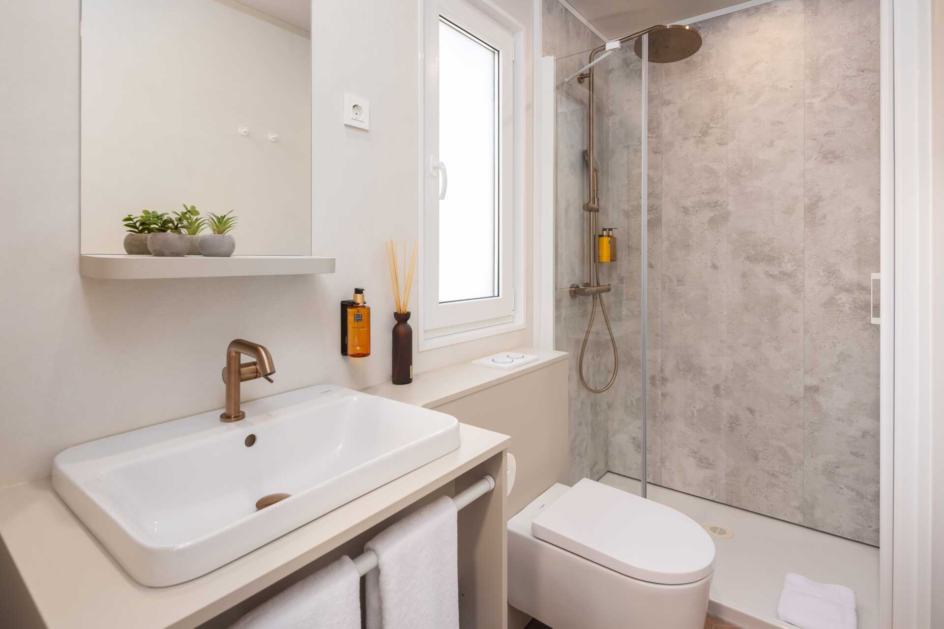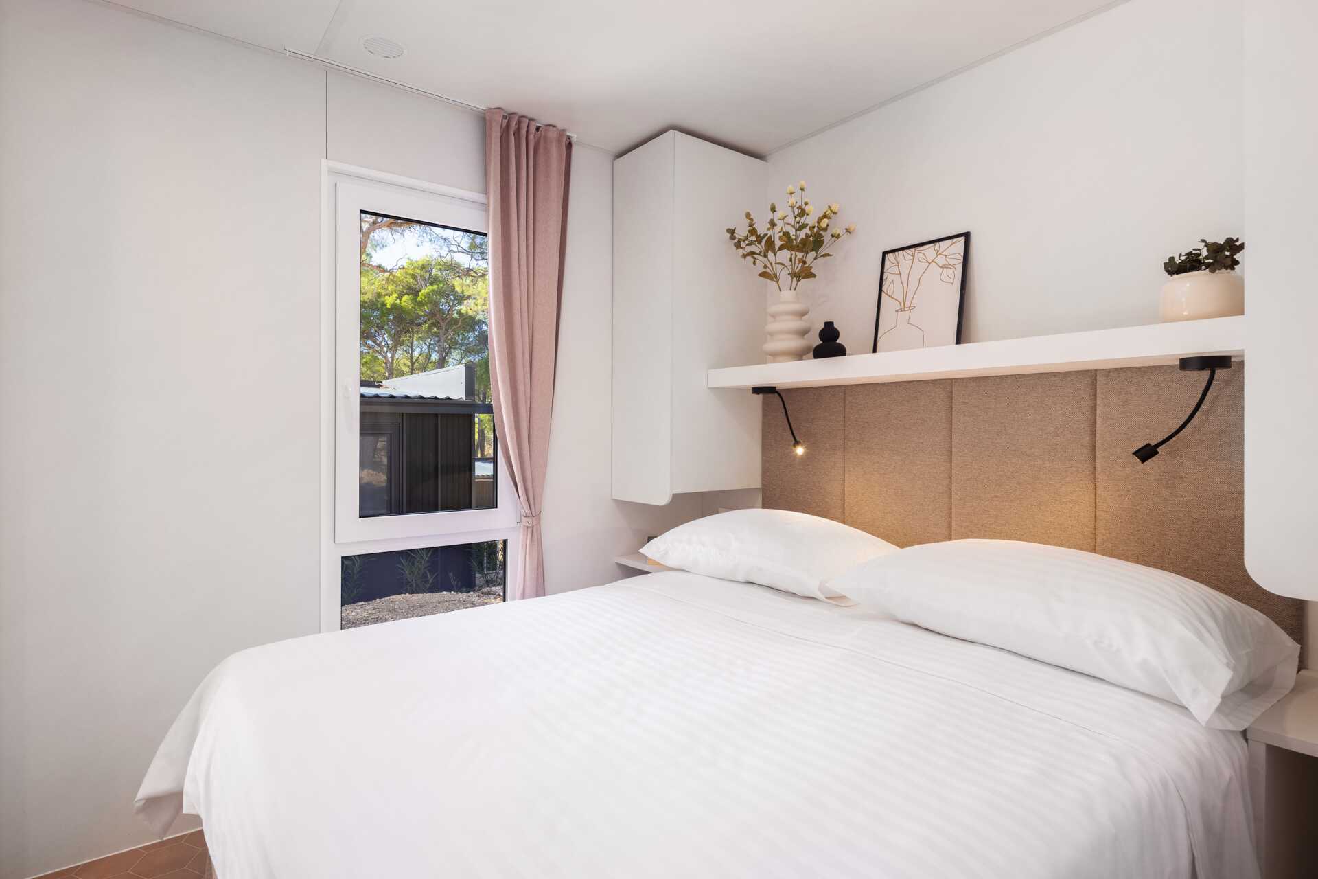 Trerumslägenhet superior med markterrass med solsängar. Två separata sovrum, varav ett med en dubbelsäng och ett med två enkelsängar. Bäddsoffa. Köksdel med kylskåp, spis, vattenkokare, kaffemaskin, diskmaskin och enklare köksutrustning. Wifi, luftkonditionering och deponering ingår. Tv. Hårtork. Två badrum med bad/dusch och wc. Städning 1 gång per vecka. Barn under två år räknas in i max antal personer i rummet. Trerumslägenheter superior är belägna centralt på området, nära poolen och lekplatsen.