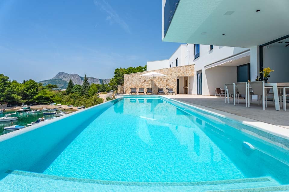 Upplev Kroatiens majestätiska skönhet på Beach Blessing, inbäddat ovanför en pittoresk naturhamn på Kroatiens fängslande adriatiska kust. Njut av panoramautsikt över havet varifrån som helst på din privata terrass.