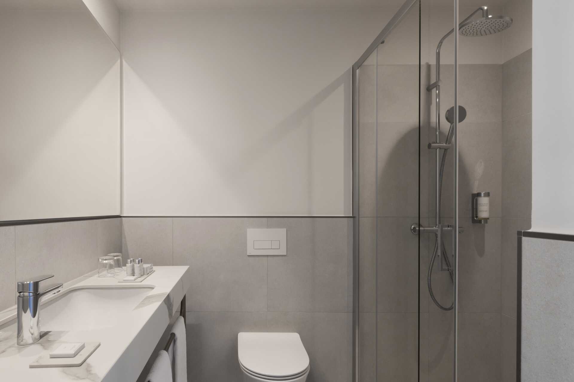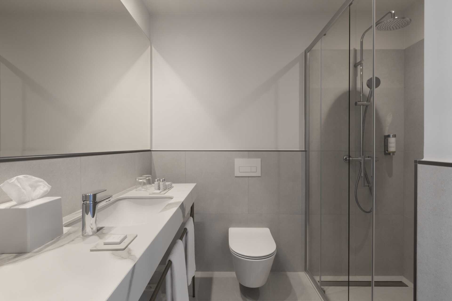 Dubbelrum med balkong och begränsad havsutsikt. En dubbelsäng. Wifi, luftkonditionering och deponering ingår. Minibar. Vattenkokare samt kaffe och te. Tv med internationella kanaler. Hårtork. Badrum med dusch och wc. Städning 7 ggr/vecka.