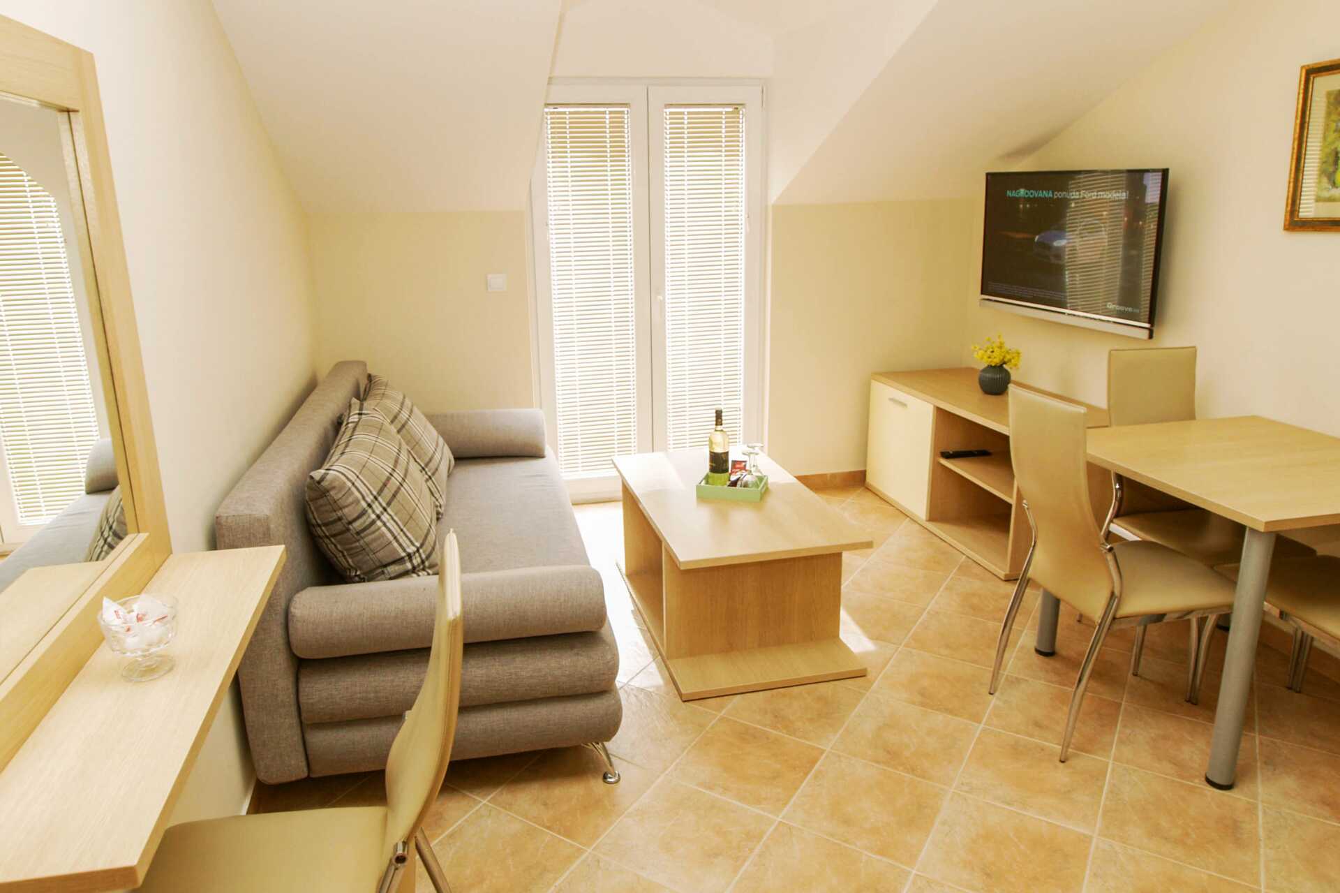 På Bondi bor du i välutrustade lägenheter med bara en minut till stranden och ca 5 minuters promenad till hamnen i Makarska där restauranger, barer och butiker ligger på rad.